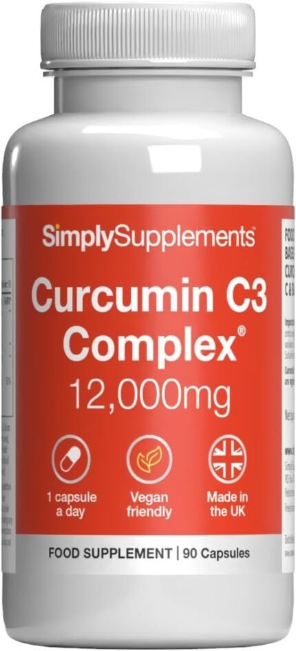 Curcumin C3 Complex 12,000mg with Bioperine & Vitamin C | 190mg Curcuminoids | High-Strength Turmeric Extract | Vegan & Vegetarian Friendly | 90 Capsules | UK-Made, GMP Certified