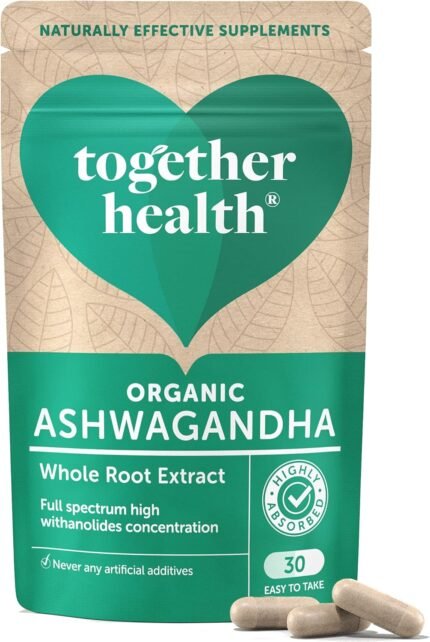 Ashwagandha – Together Health – 100% Organic Certified Ashwagandha Roots – High Concentration KSM-66, Full Spectrum Extract – Vegan Friendly – Made in The UK – 30 Vegecaps