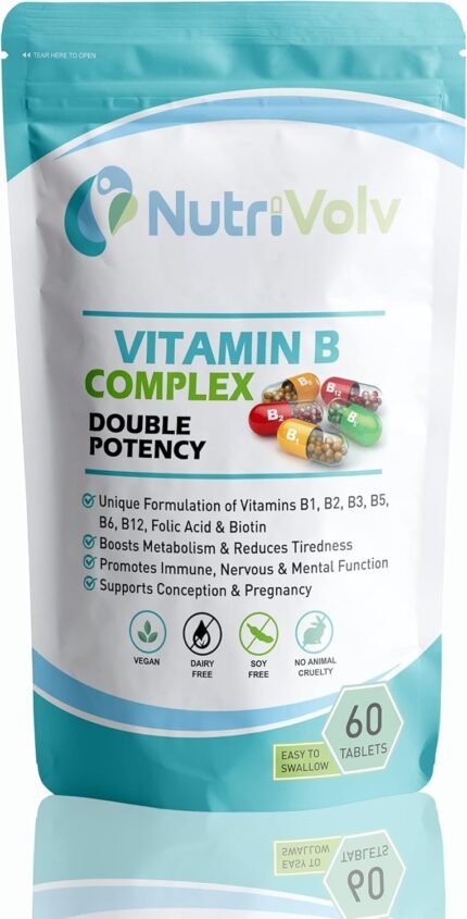 Vitamin B Complex Supplements with B Vitamins Including high strength B12, B1, B2, B3, B5, B6, B7, B9, Biotin & Folic Acid- Support Healthy Energy Metabolism | 60 Tablets