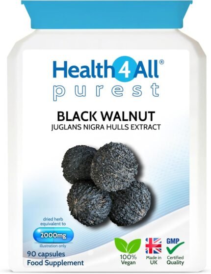 Health4All Black Walnut Hulls 2000mg 90 Capsules, Strongest Black Walnut Green Hull Capsules for Intestinal Health, Cleanse & Detox, Vegan, Purest: no additives | Made in UK