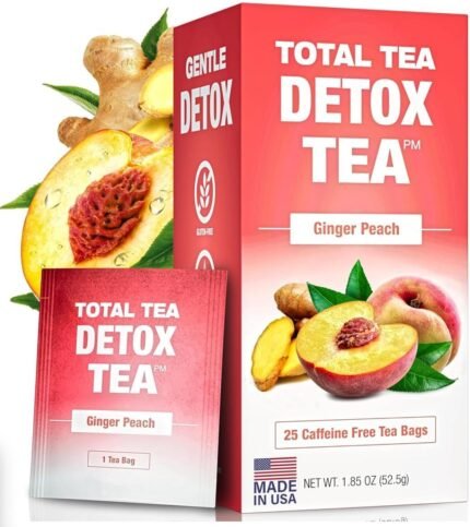 Total Tea Slimming Detox Tea Caffeine Free, Herbal Blend with Chamomile, Hibiscus and Ginger Root for Colon Cleanse Weight Management Drinks – Natural Ginger & Peach Tea (25 Bags)