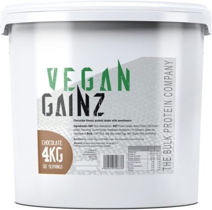 Vegan Gainz 4kg – Plant Based Protein Powder – Weight Gainer- 32 Servings & 30g Protein Per Serving – The Bulk Protein Company (Chocolate)
