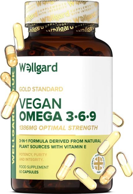 Vegan Omega 3 6 9 Capsules by Wellgard – High Strength 1386mg Flaxseed Oil Capsules with Alpha Linolenic Acid (ALA), Linoleic Acid (LA), Vitamin E