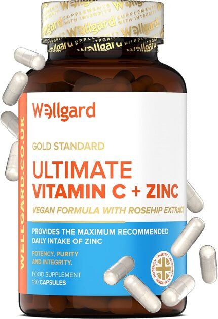 Vegan Vitamin C And Zinc by Wellgard – Maximum Recommended Daily Intake of Zinc, Made In UK