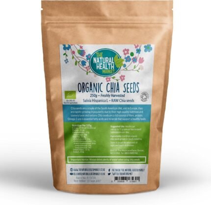 Organic Chia Seeds by The Natural Health Market 250g • Soil Association Certified Organic • Mixed Black Chia and White Chia • Rich Protein Source (250g)