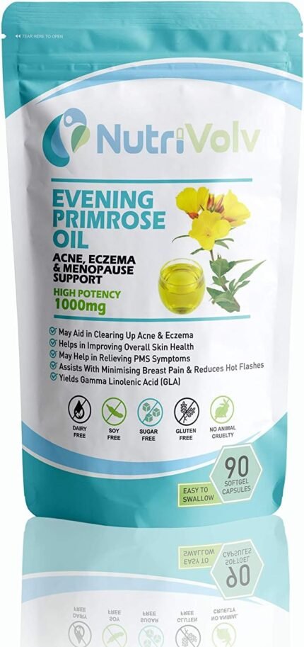 Evening Primrose Oil 500mg 30 Softgel Capsules – Supports Women’s Health, Rich in Gamma-Linolenic Acid (GLA), with Vitamin E for Skin Health & Antioxidant Protection.