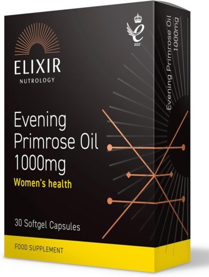 Evening Primrose Oil 1000mg 30 Capsules – Supports Women’s Health, Rich in Gamma-Linolenic Acid (GLA), with Vitamin E for Skin Health & Antioxidant Protection.