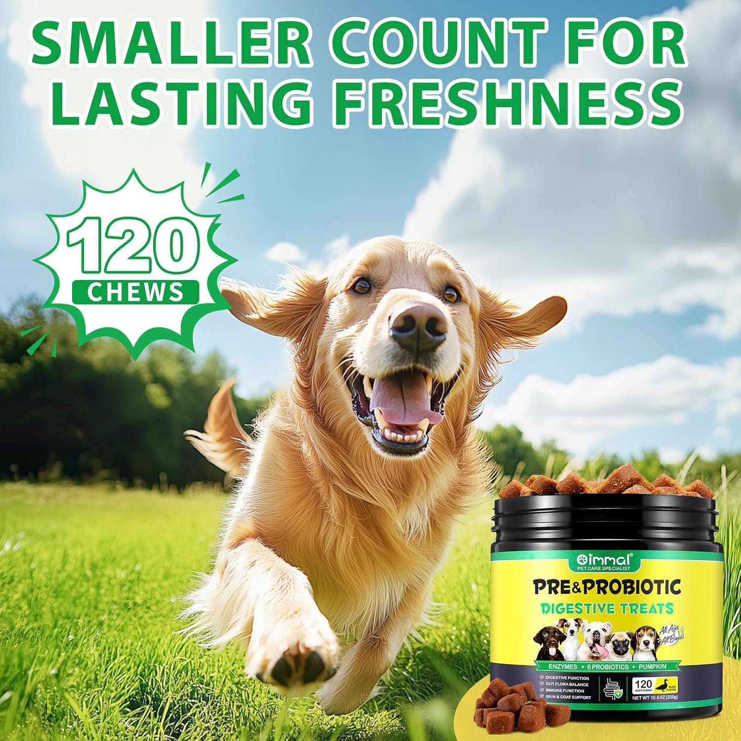 120pcs Probiotics for Dogs,Dog Probiotics Supplements,Gut Flora Balance,Skin & Coat Support,for Small, Medium and Large Dogs(Duck Flavor)