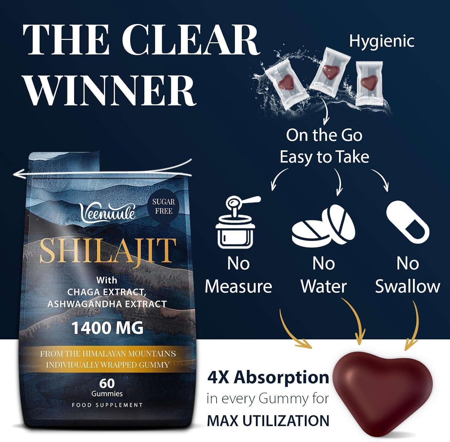 Pure Excellence: Veenuule shilajit gummies for men and women adhere to a zero-additive philosophy, free of fillers, artificial additives, or hidden ingredients. Take two gummies daily for a pure, natural formula that helps you unleash your full potential throughout the day.