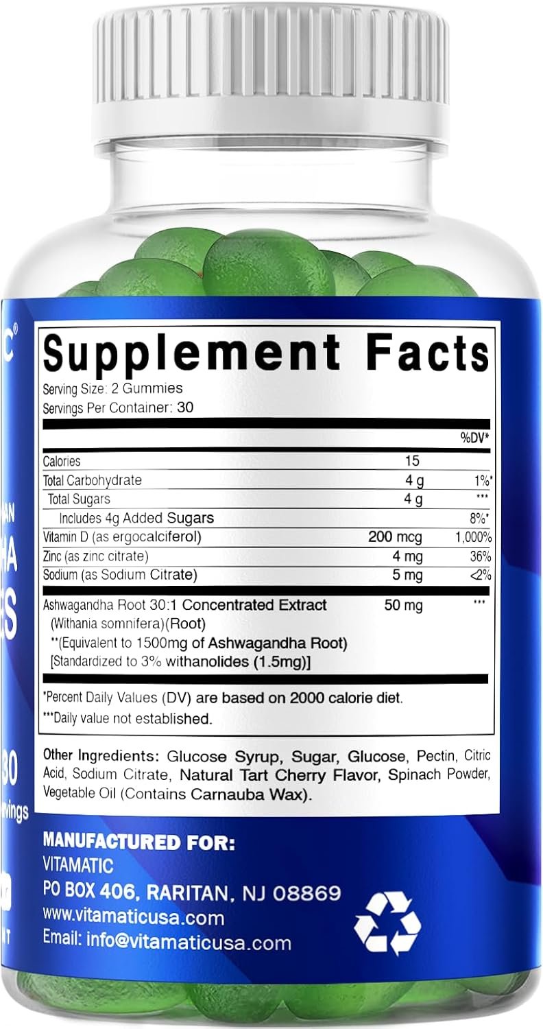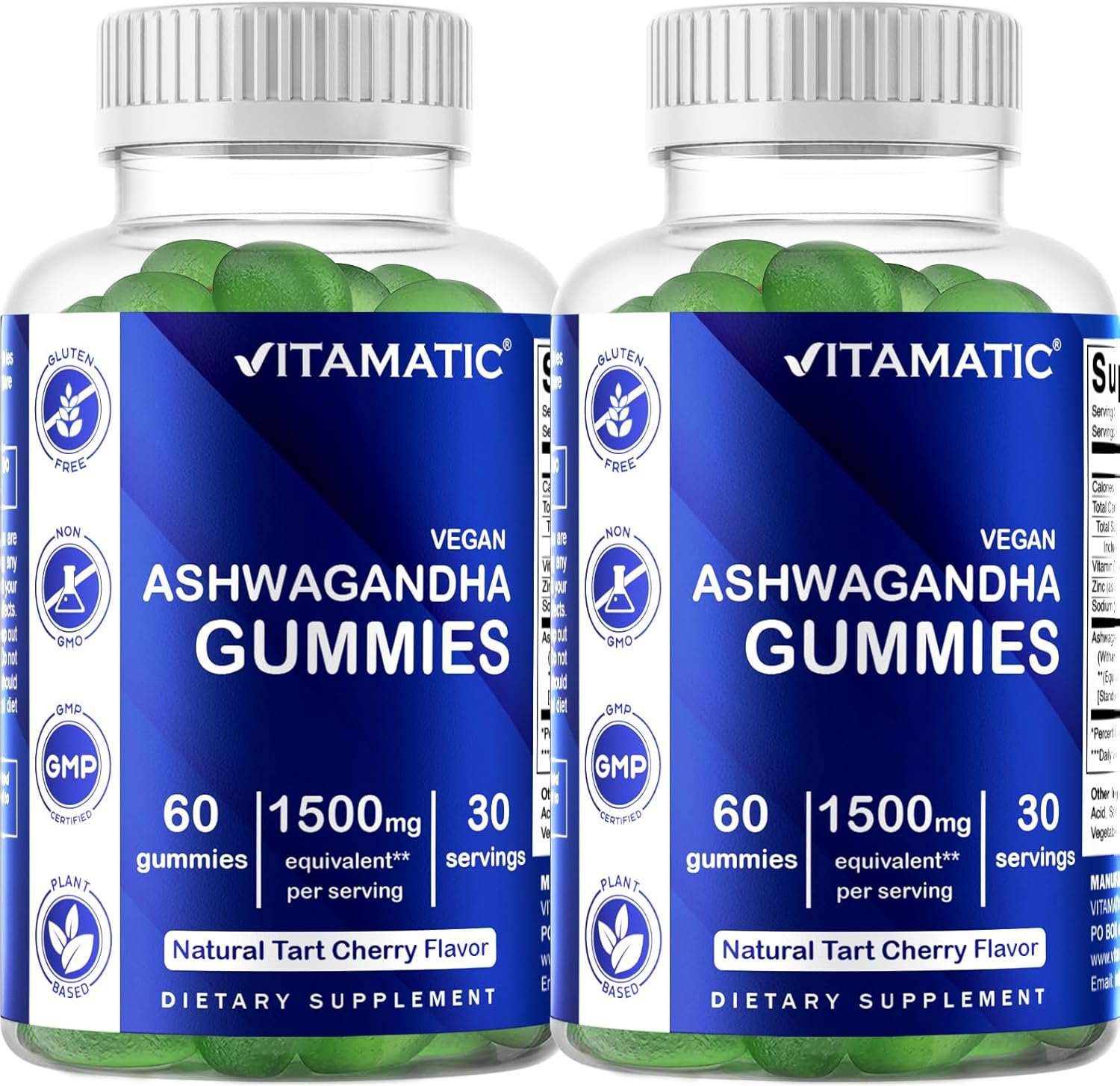 2 Pack Vitamatic Ashwagandha Gummies 1500mg per Serving – 60 Vegan Gummies – 3% Withanolides – Promotes Stress Relief Naturally, Relaxation, Calmness & Immune Health (Total 120 Gummies)