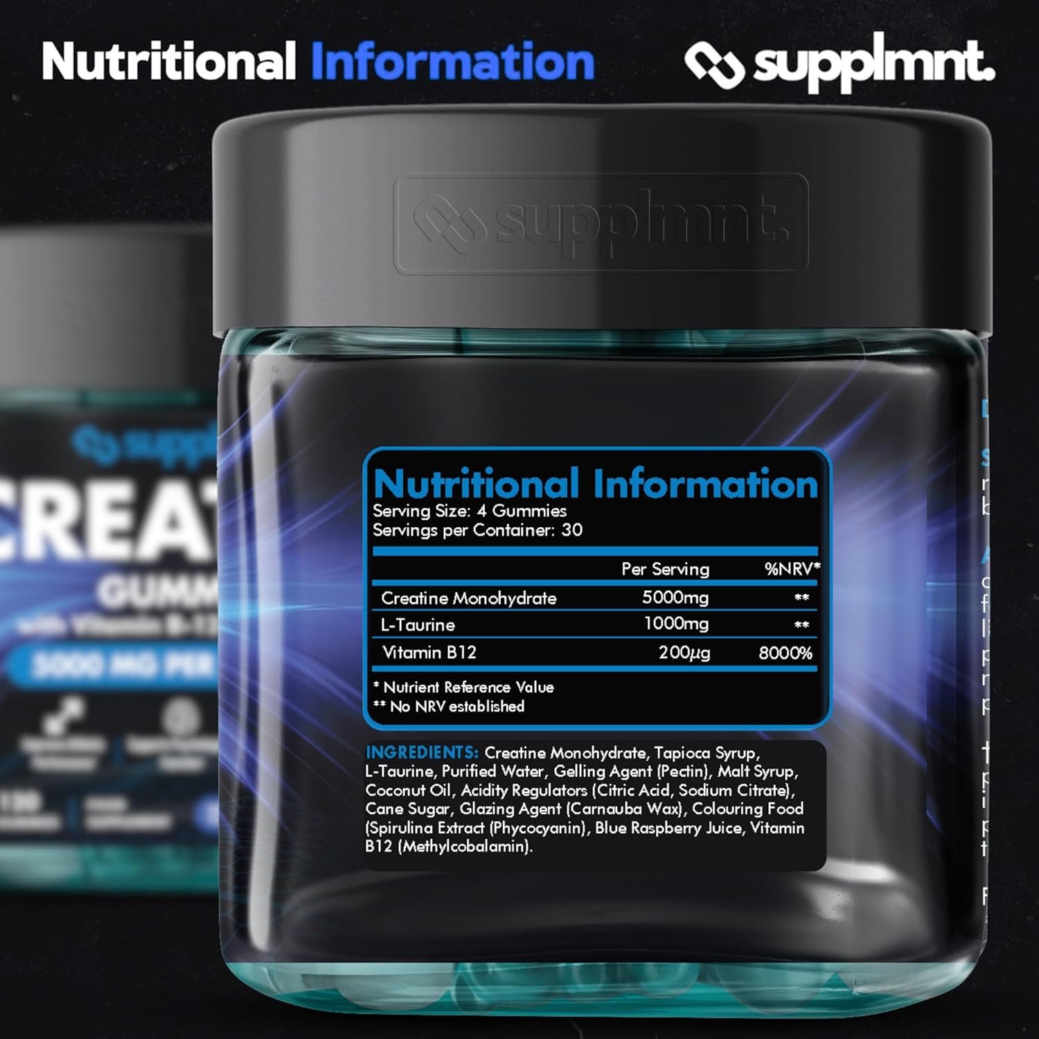 Maximum Strength: Powerful 5000mg creatine monohydrate formula combined with essential B12 and L-Taurine in convenient gummy form for optimal muscle support and energy enhancement