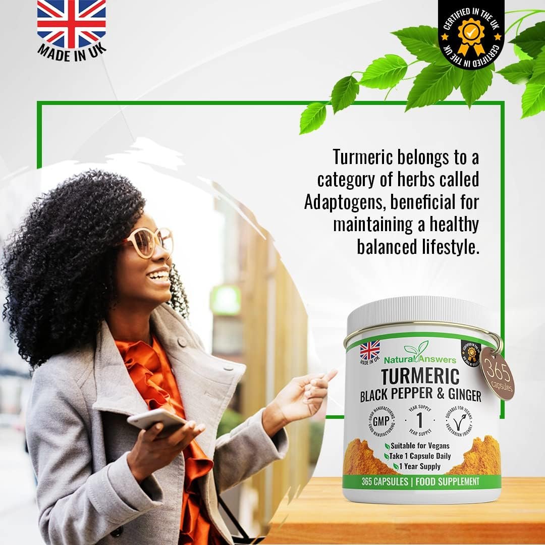 365 Turmeric, Black Pepper & Ginger Capsules – High Strength Turmeric 365 Vegetarian Capsules (1 Year Supply) – Vegetarian Supplement Made in The UK by Natural Answers
