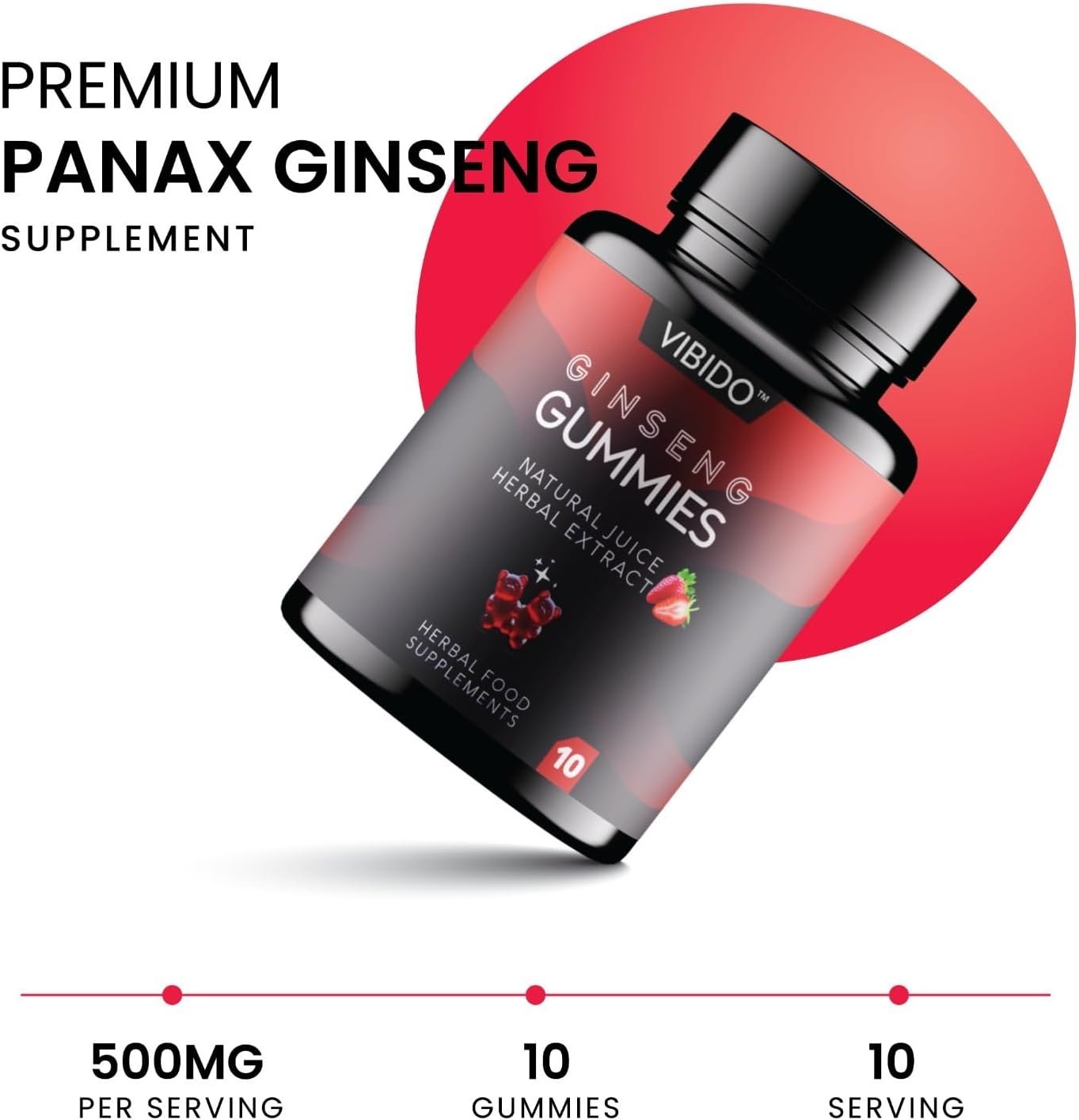 500mg Gummy | Stronger | Longer | Harder | Performance | Extra Strength Enhancing Gummies, Stamina Endurance Booster Supplement for Men | 10 Ginseng Gummy