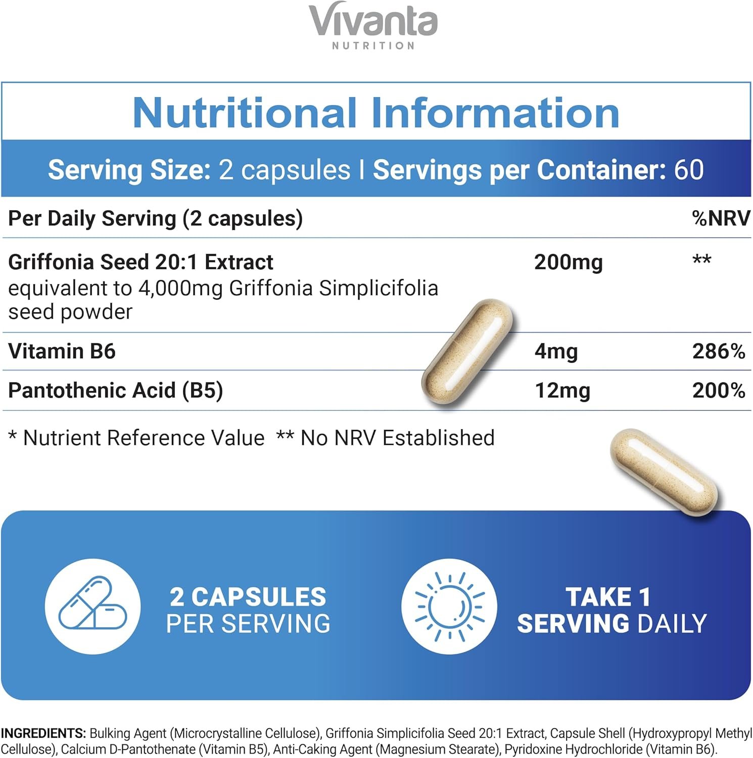 NATURAL GRIFFONIA SEED EXTRACT PROVIDING 5HTP – Our 5 htp supplement high strength formula is made using natural Griffonia simplicifolia seed extract, a plant-based source of 5-htp – meaning no synthetic additives or artificial serotonin supplements.