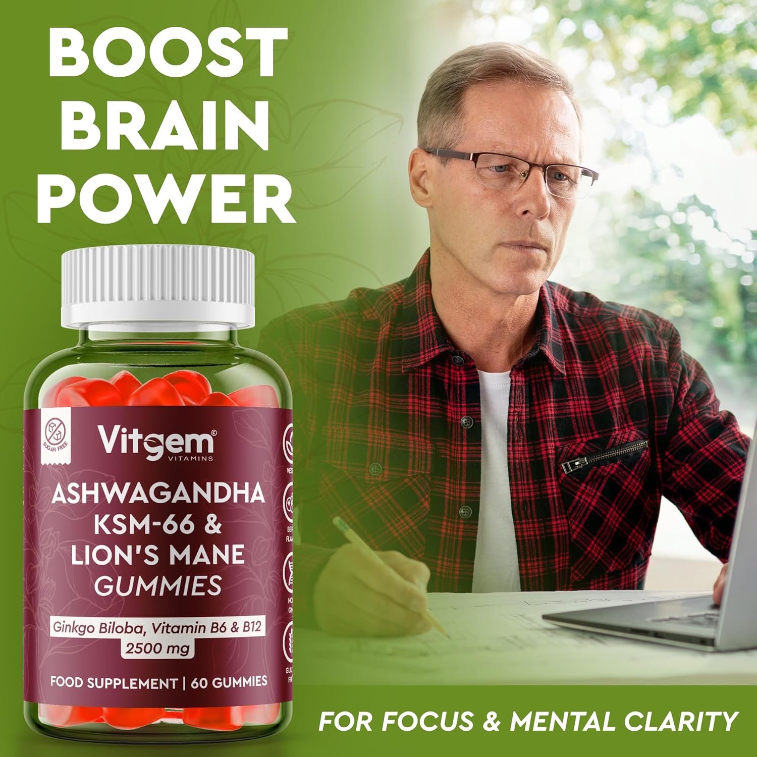 𝐁𝐎𝐎𝐒𝐓 𝐁𝐑𝐀𝐈𝐍 𝐏𝐎𝐖𝐄𝐑 – Enhance focus, memory, and cognitive function with Vitgem Lions Mane and Ashwagandha Supplement. Powered by Lion’s Mane and Ginkgo Biloba, these natural nootropic gummies support mental clarity and boost brain power for sharper focus