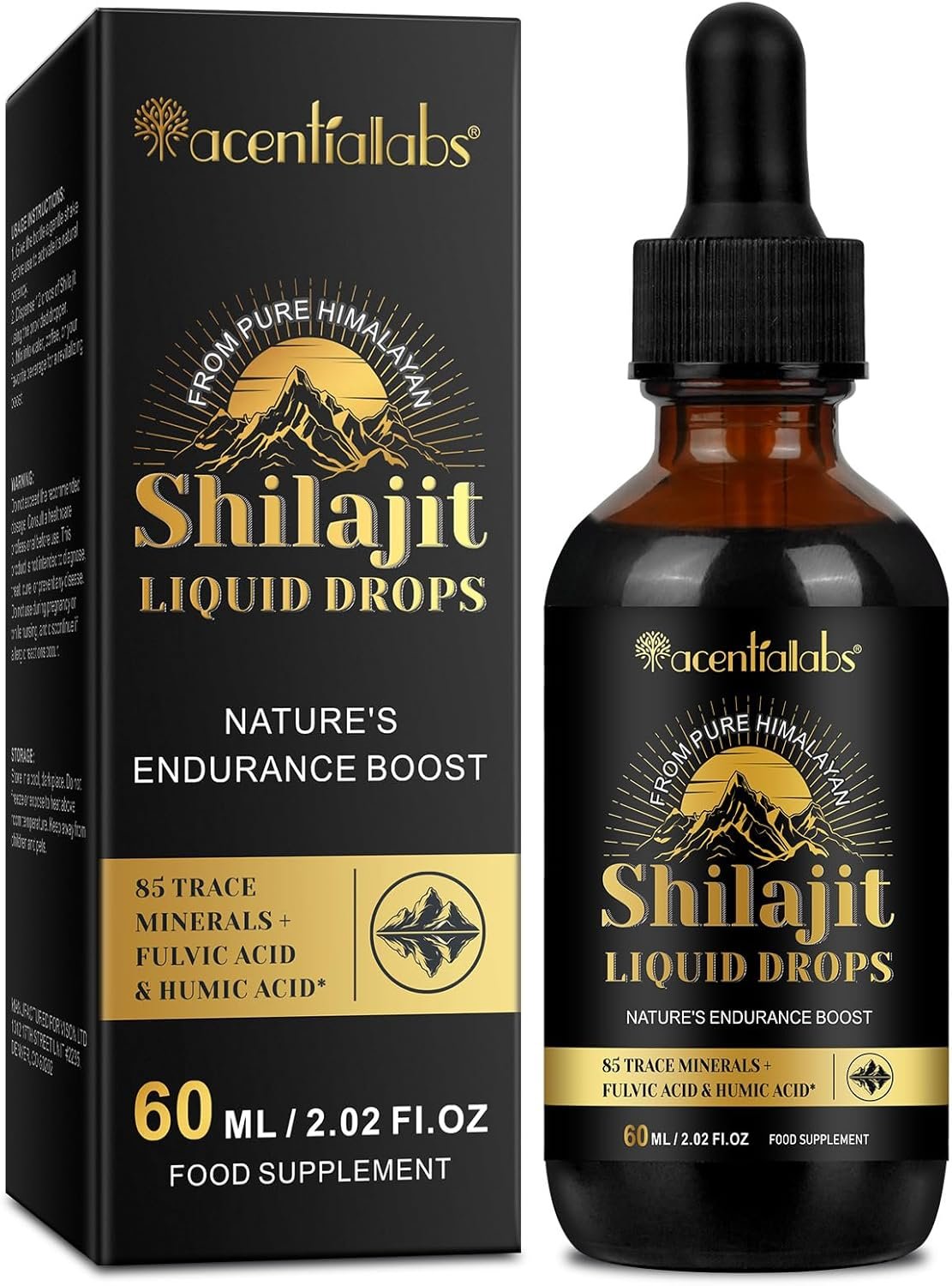 60ML Shilajit Liquid Drops, High Strength Himilayan Shalajit Resin, 100% Pure Shilajit with Fulvic Acid and Minerals, Strength & Stamina Booster for Men and Women