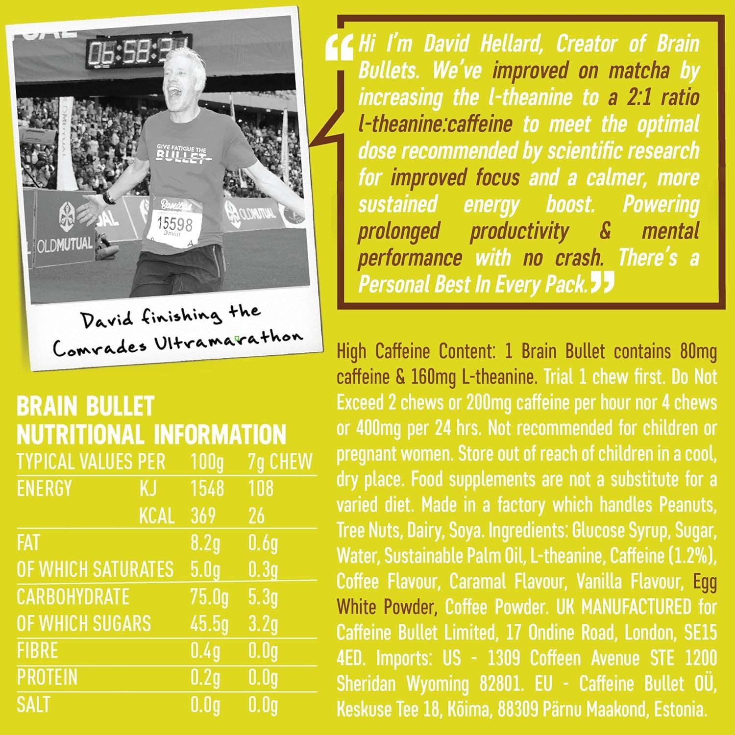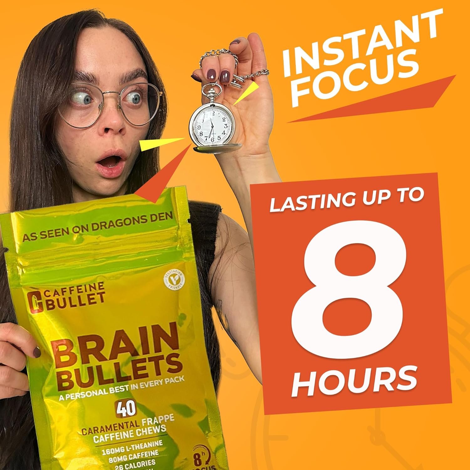 INSTANT FOCUS & MENTAL CLARITY FOR UP TO 8 HOURS: Backed by neuroscience, CaraMENTAL Brain Bullet Chews deliver instant focus and mental clarity for up to 8 hours. Each caffeine chew combines 80mg of caffeine with 160mg of L-Theanine, a proven nootropic stack that sharpens cognitive agility, enhances mental acuity, and boosts energy without jitters or crashes. Ideal for office workers, students, shift workers, and high performers, this smart brain-boosting formula provides essential cognitive support, helping you stay productive and perform at your peak. Whether tackling major projects or long shifts, Brain Bullet helps you stay alert and in the zone—all in one convenient chew.