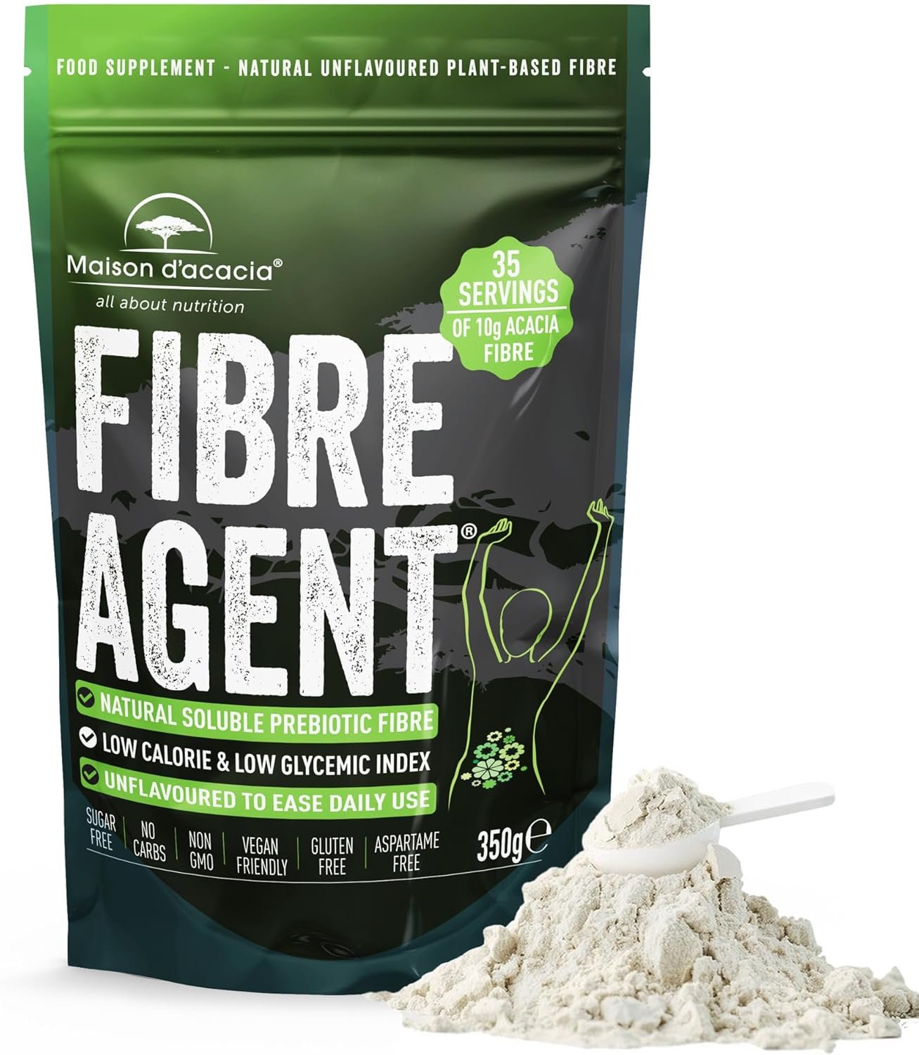 Acacia Fibre Supplement 350g Multi Award Winning. Everyday Prebiotic Regularity & Constipation Relief Unflavoured. Natural Fiber with Nothing Added. Psyllium Husk & Inulin Alternative. 35 Servings