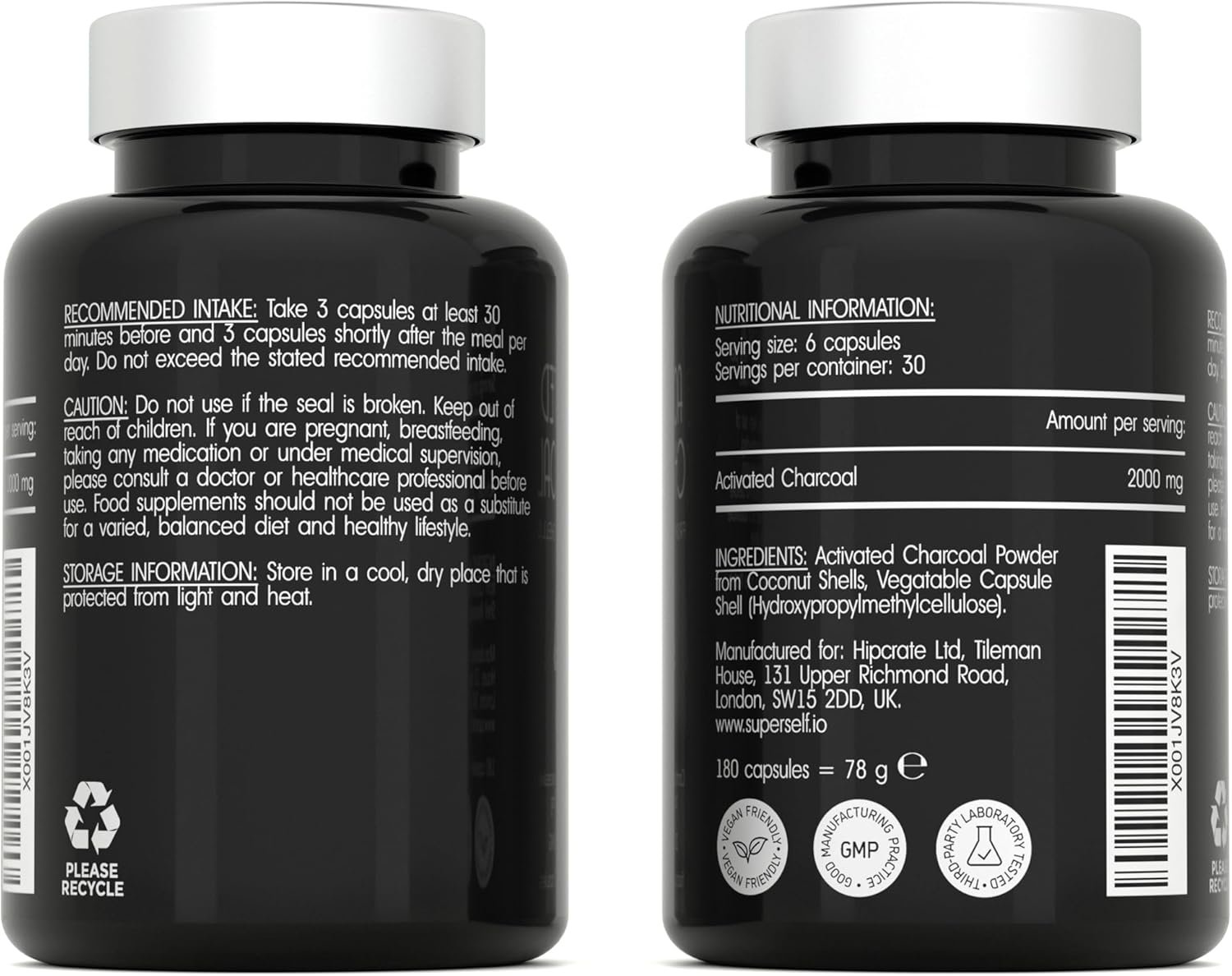 PURE, NATURAL, NO ADDITIVES – Made from wild-harvested coconut shells, SuperSelf activated charcoal tablets are 100% pure, with no additives or fillers. Each serving contains 2000mg of activated charcoal, split over 6 capsules. We recommend taking 3 capsules half an hour before a meal and the other 3 after. The package contains 180 activated charcoal capsules.