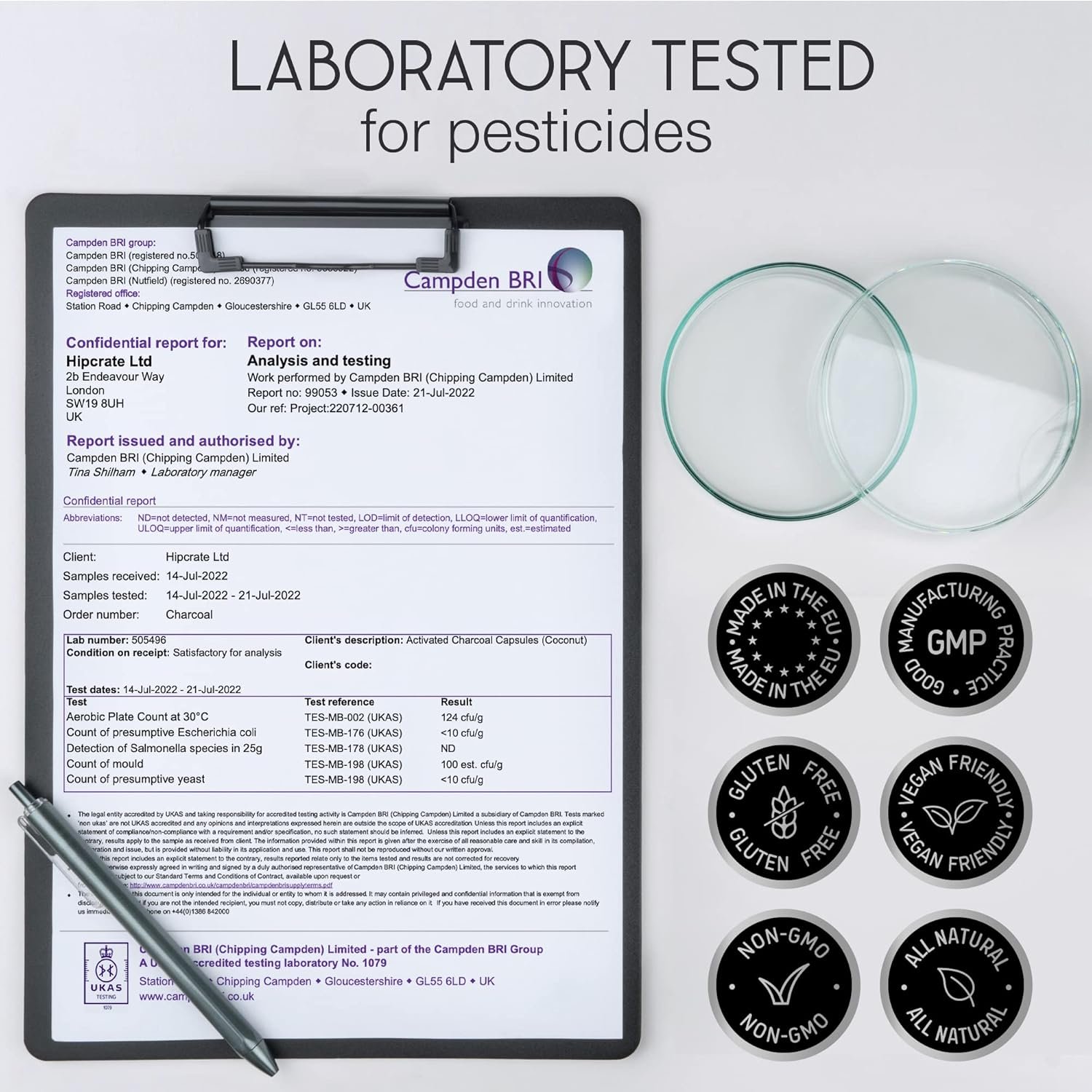Our ingredients and manufacturing processes are subject to strict quality controls. The quality and safety of our ingredients are tested by independent third-party laboratories. We are proud to have facilities and processes that meet the highest British and EU standards and are compliant with GMP regulations.