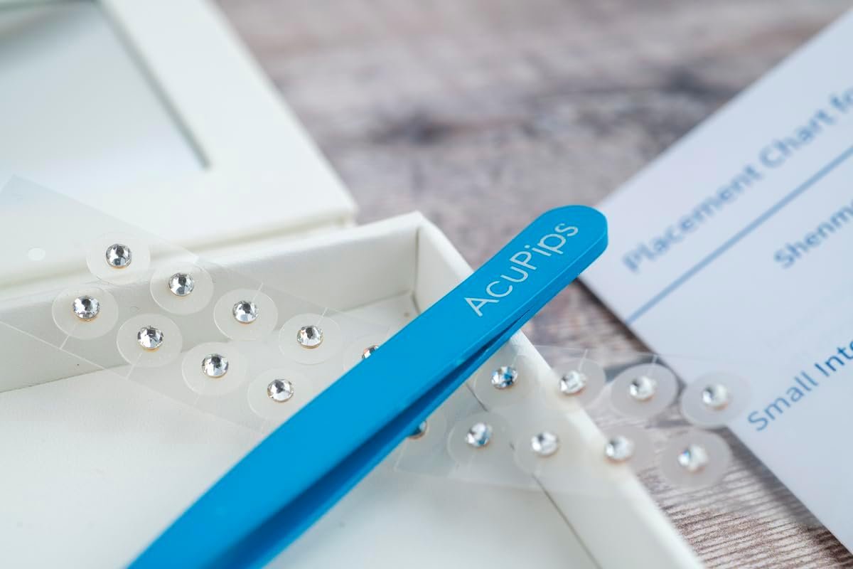 Relieve stress and anxiety naturally with the AcuPips Ear Seed Kit, designed by a UK acupuncturist. This kit includes 20 crystal ear seeds and a detailed ear map for precise placement.