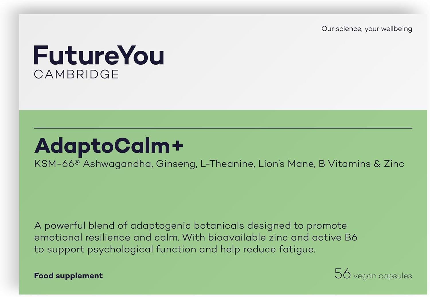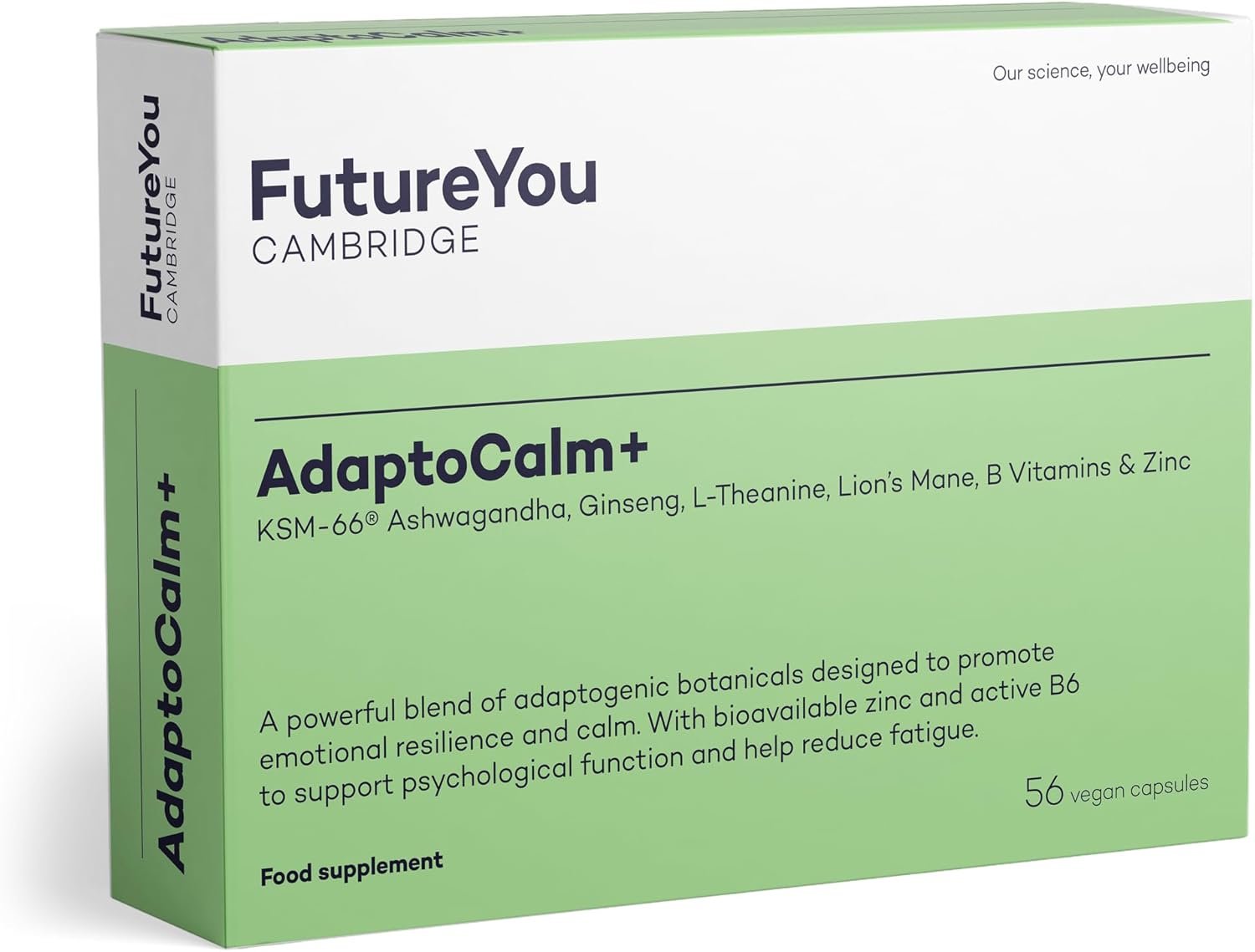 AdaptoCalm+ Stress Support Supplement | Ashwagandha KSM-66, Panax Ginseng, L-Theanine & Lion’s Mane | Zinc & B Vitamins for Relaxation, Energy & Mental Wellbeing – 56 Vegan Capsules