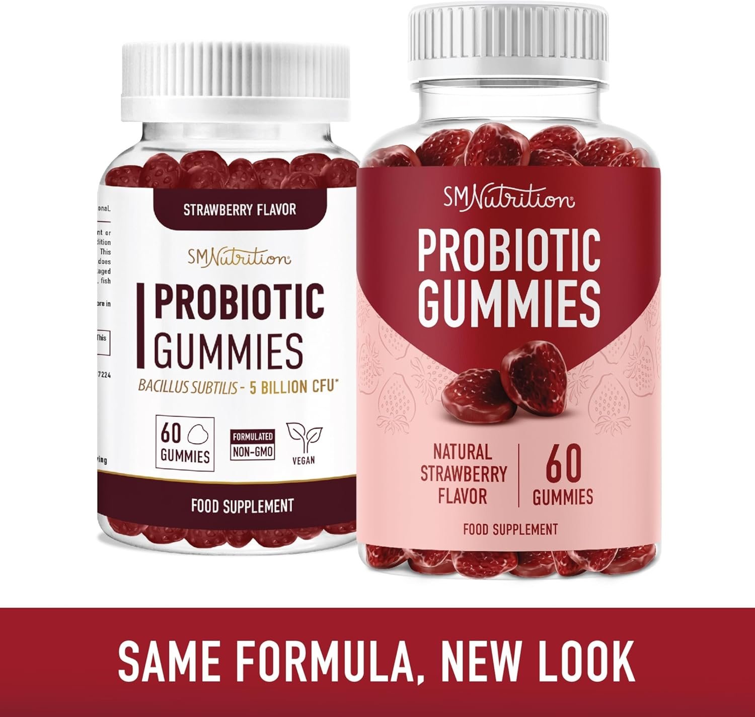 Adult Probiotic Gummies | 5 Billion CFU Adult Gummy Probiotics for Digestive Health & Immune Support* | Hardy Bacillus Subtilis Strain | Strawberry Flavor | Gluten-Free, Vegetarian | 60 Gummies