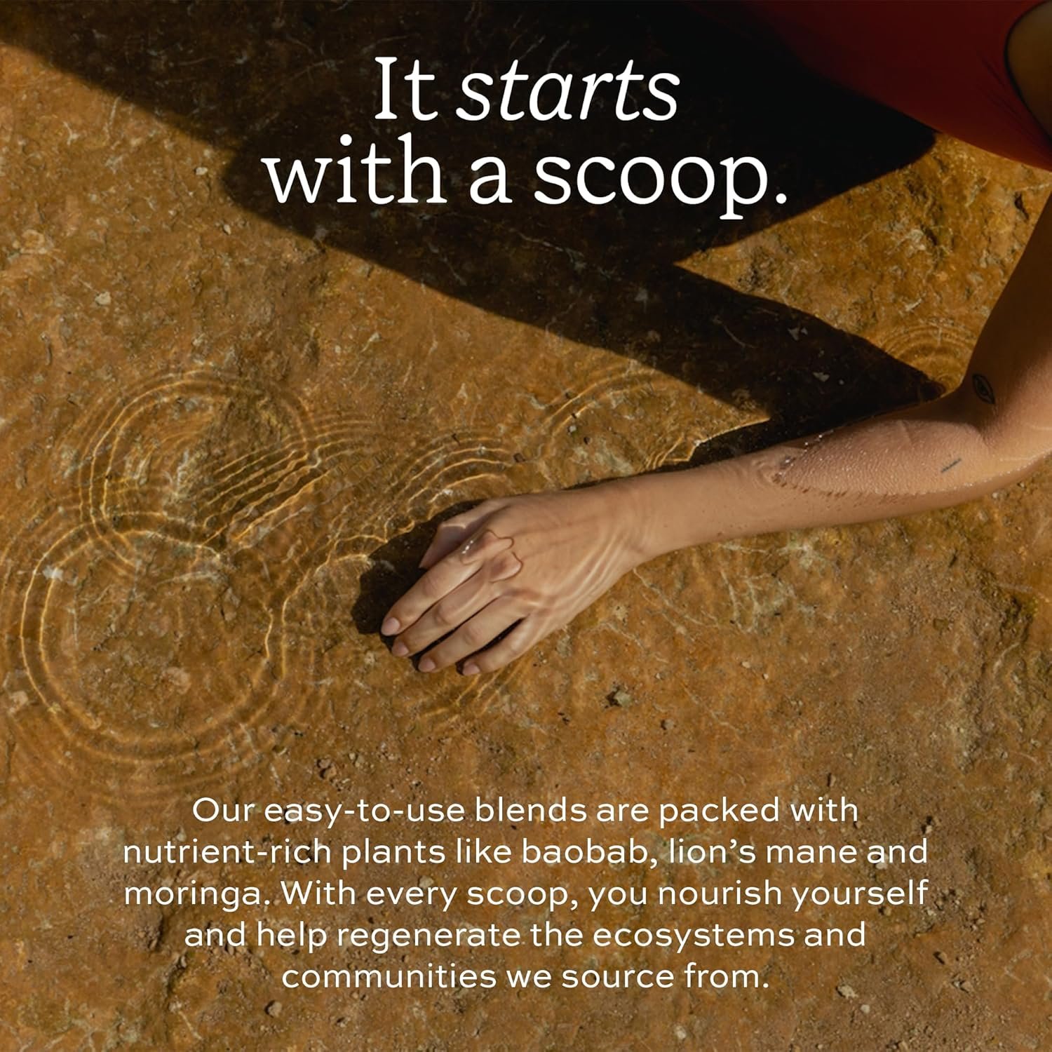 ADUNA SUPERFOOD BLENDS: Revitalise your body, nurture gut health and support your skin’s radiance inside and out. Our easy-to-use blends are packed with nutrient-rich plants like baobab, lion’s mane and moringa. With every scoop, you nourish yourself and help regenerate the ecosystems and communities we source from. Grow your vitality. And pass it on.