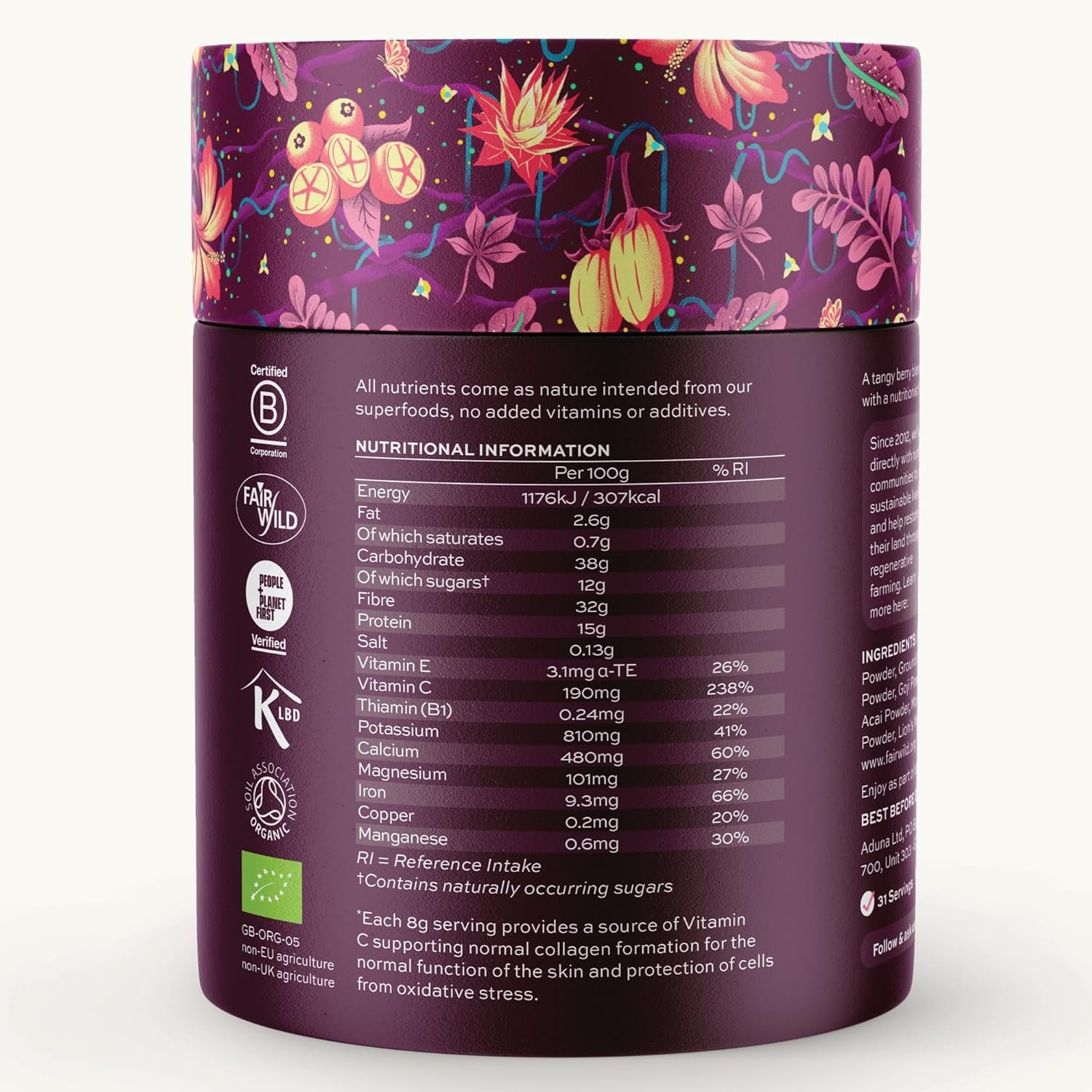 CERTIFIED ORGANIC BEAUTY BLEND: Made from certified organic ingredients, this blend includes hibiscus, baobab, lion’s mane, beetroot, maca and more. It is finely milled for smooth mixing and delivers a vibrant berry flavour with no added sugar, sweeteners or fillers. Pure goodness you can feel and taste.