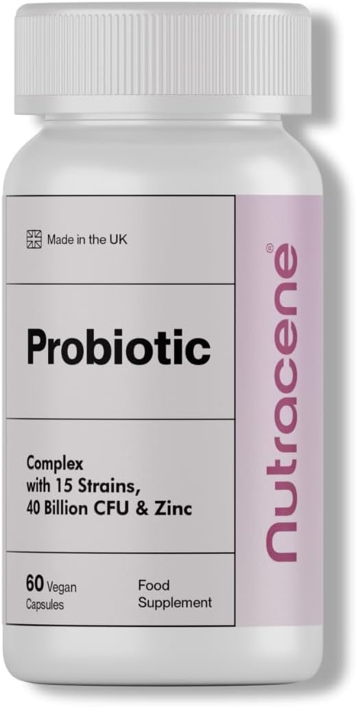 Nutracene Probiotic Complex is a high-strength, 15 strain formula designed for effective gut health and immune support. Each daily serving delivers a potent 40 billion CFU—including 26 billion CFU of Lactobacillus Acidophilus— alongside a clinically balanced mix of Lactobacillus, Bifidobacterium, and Streptococcus strains.