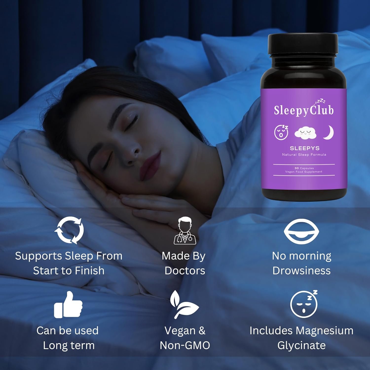 SUPPORTS SLEEP LONG TERM: Unlike other sleeping pills or supplements, Sleepys has been specifically formulated to safely support your sleep long term. It can be taken every night indefinitely, but if preferred it can also be used intermittently/as needed.