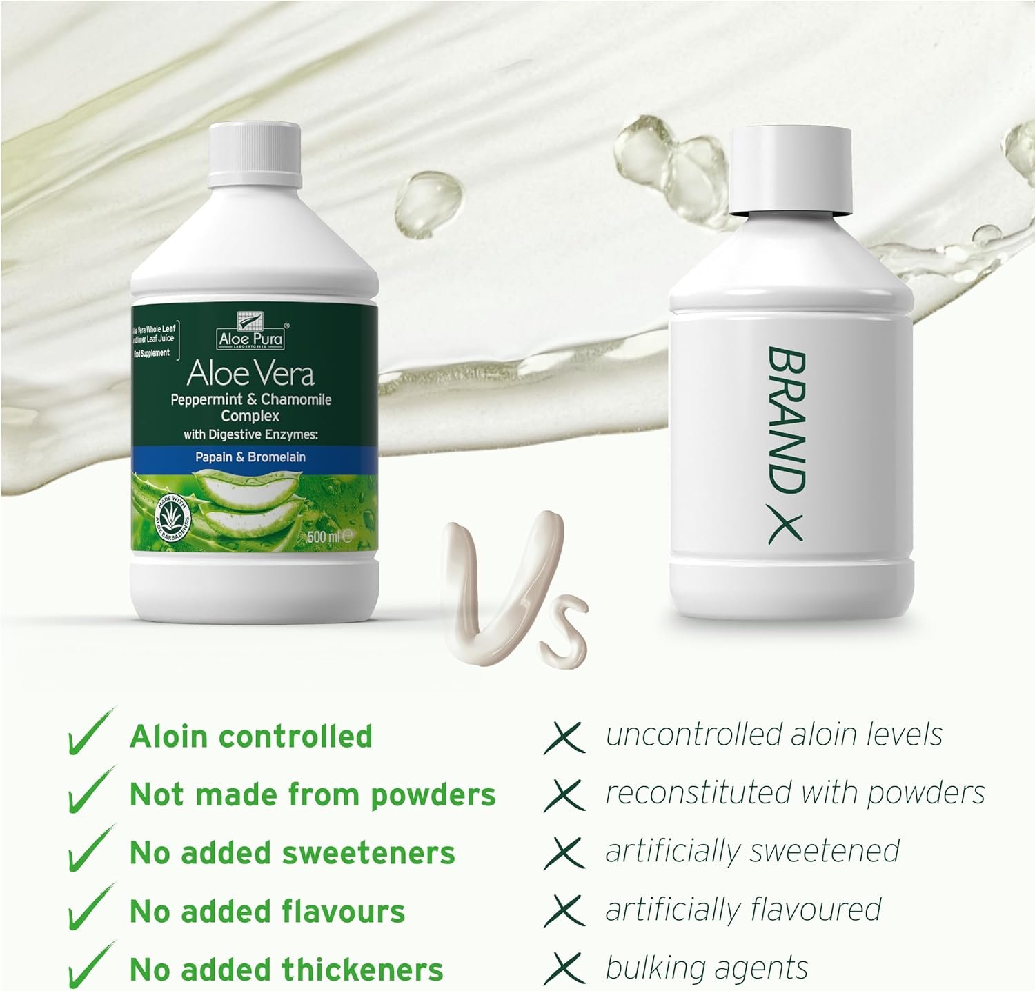 Aloe Pura Aloe Vera Peppermint & Chamomile Juice, Natural, Vegan, Cruelty Free, Digestive Enzymes, Papian & Bromelain, Food Supplement, 500 ml