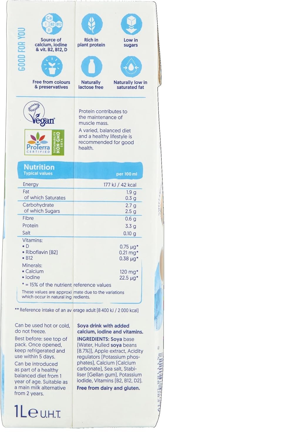 MULTI-BENEFICIAL NUTRIENTS: Healthy alternative to your everyday high calorie dairy milk. Soy drink, has No Trans Fats and is a good source of Calcium, Iodine & Vitamins D, B2, B12.