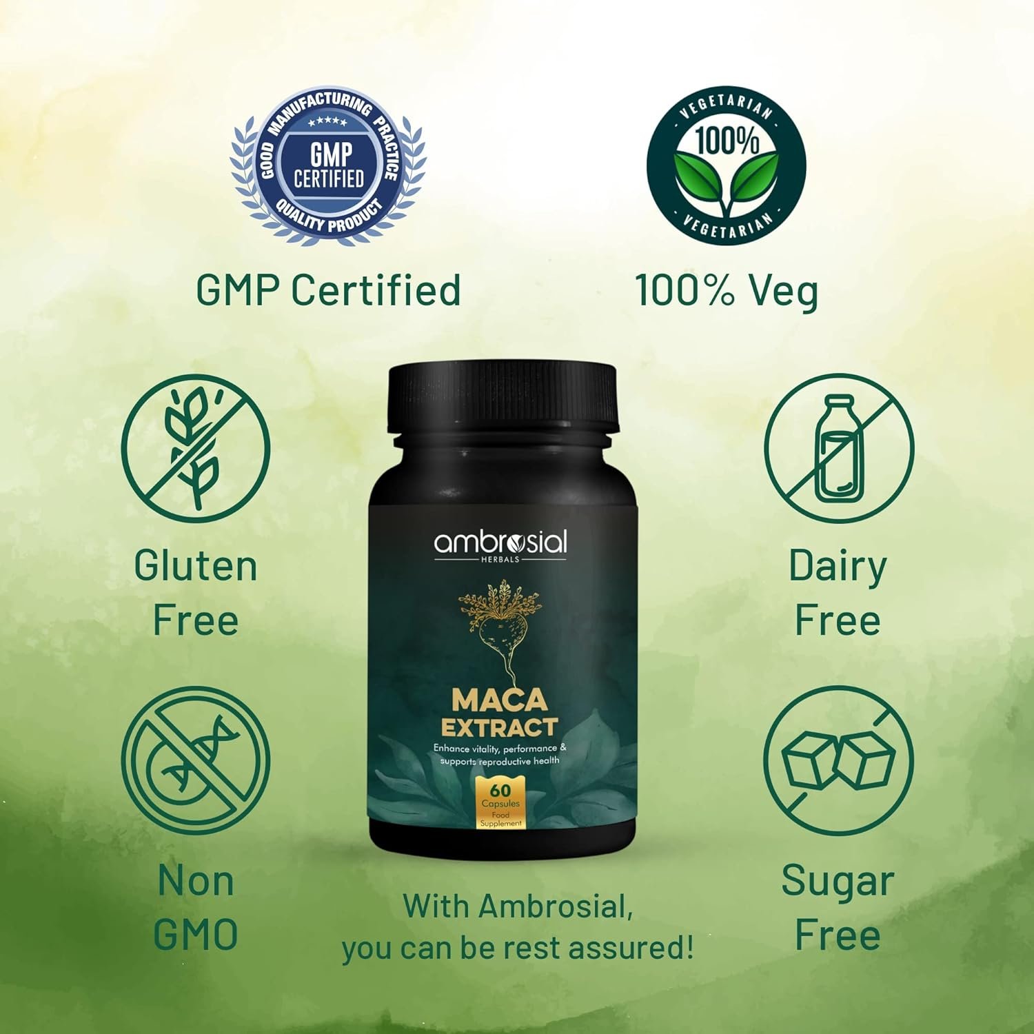 Ambrosial Maca Root Capsules for Women & Men – High Strength 500 Maca mg per Capsule, Supports Stamina & Energy – Natural Maca Root High Strength 60 Capsules