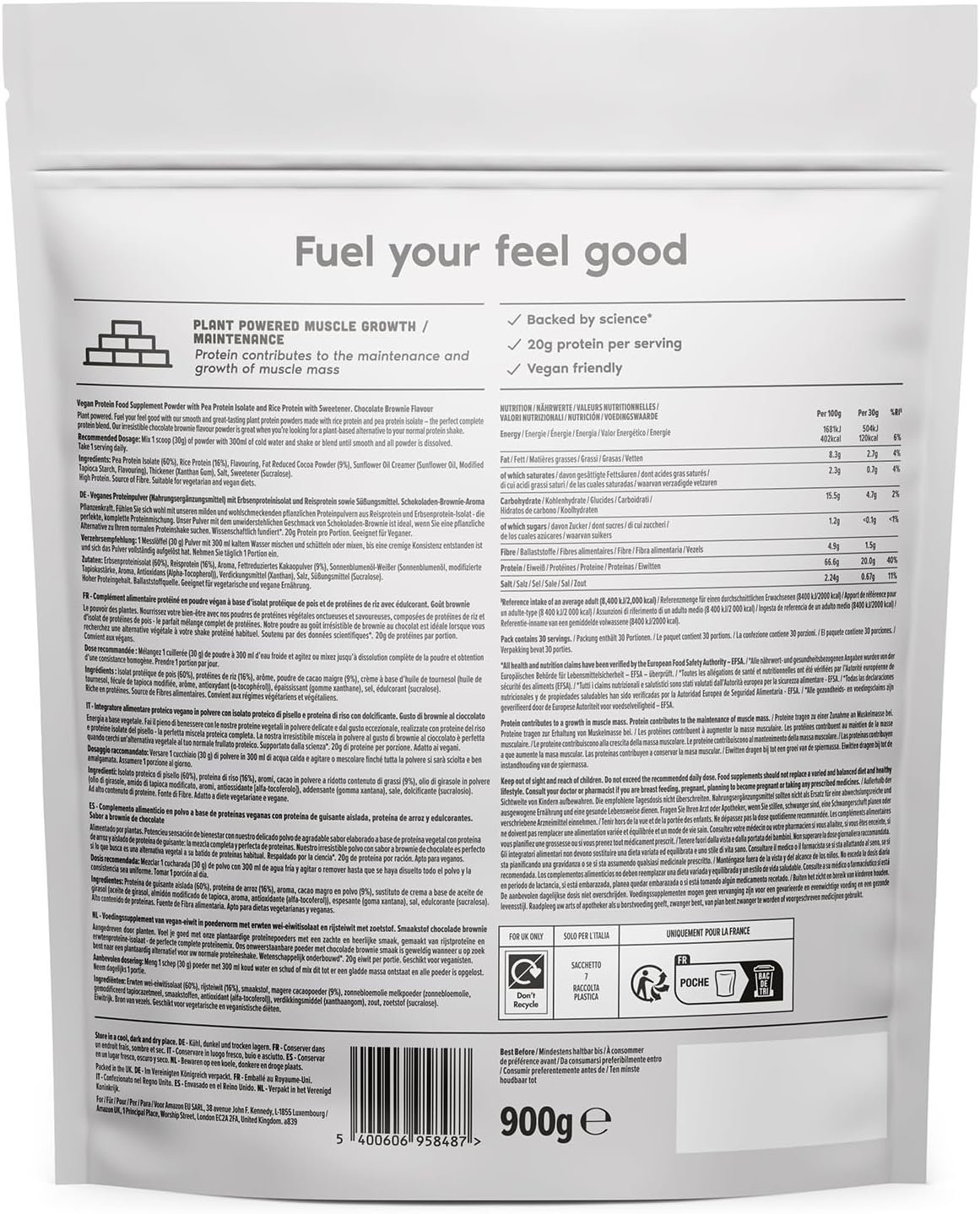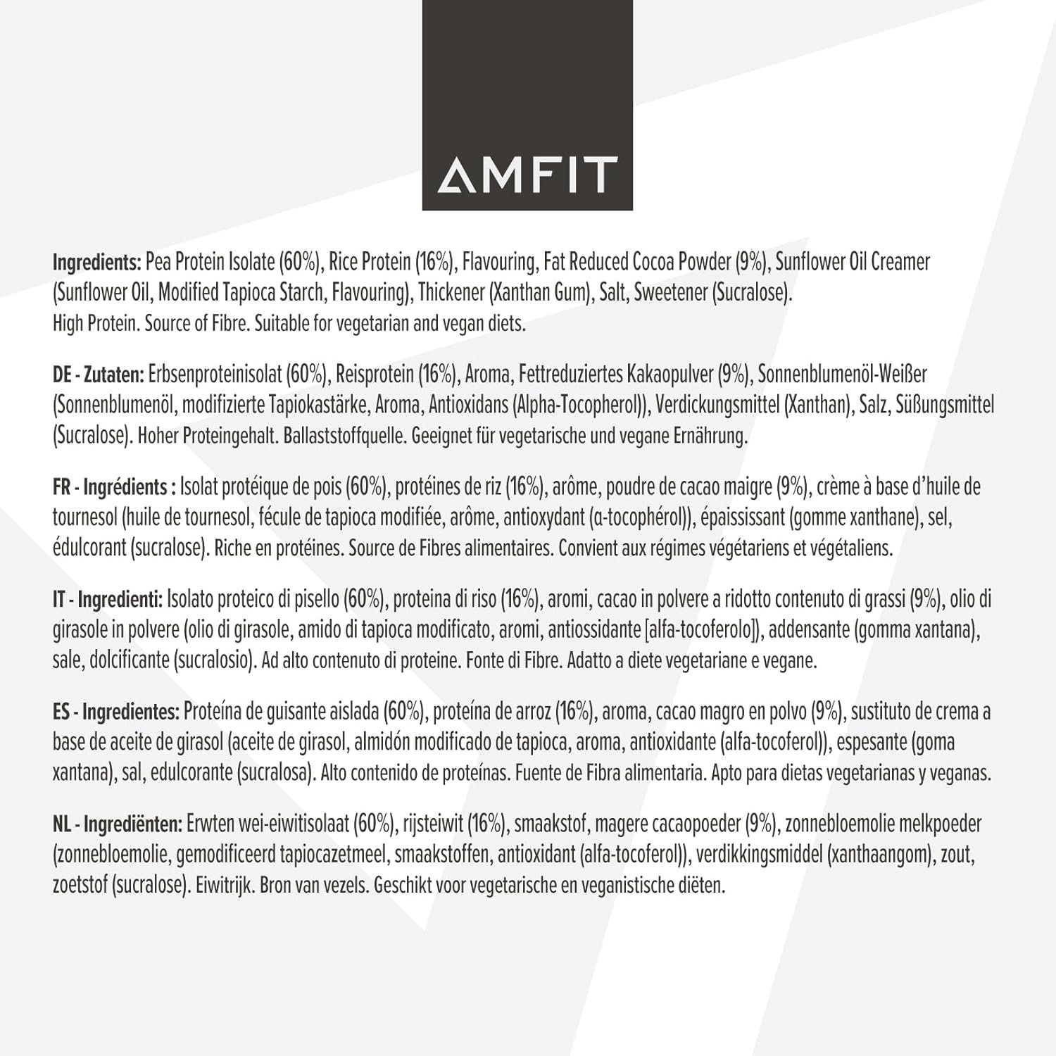 Amfit Nutrition Plant Based Protein Powder, Chocolate Brownie, 900g