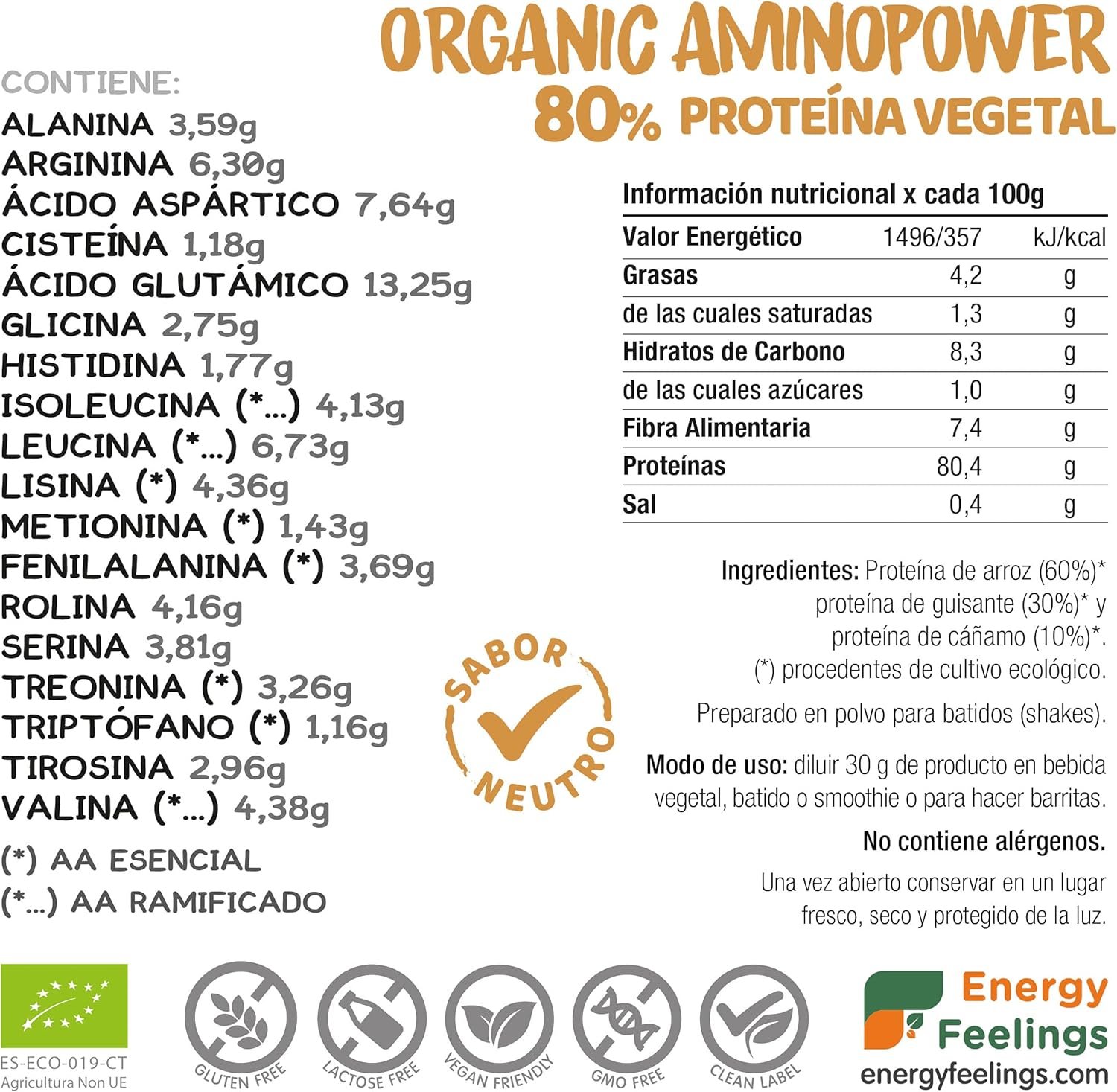 Organic Amino Power Neutral flavour is a balanced combination of 3 premium organic vegetable protein extracts: