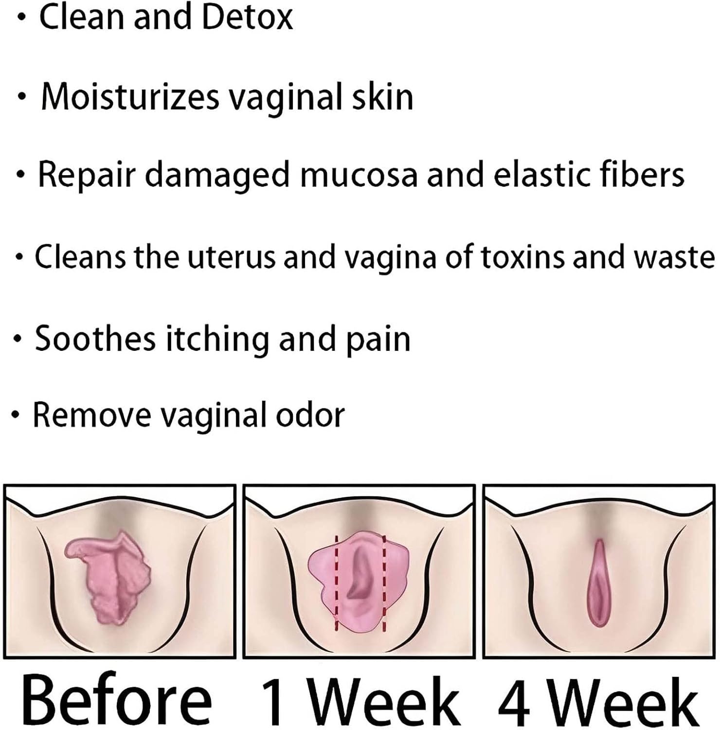 [Restore Firmness] — It can help repair the damaged mucosa and elastic fibers of the vagina, promote the self-cleaning ability of the uterus and vagina, and discharge body waste to give you a healthy, firm, girly pink vagina!