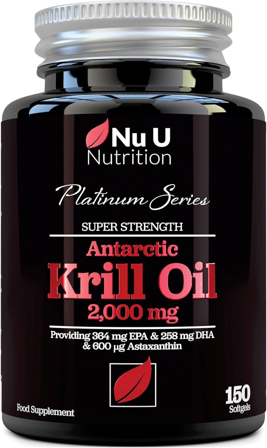Antarctic Krill Oil Super Strength 2000mg – 150 Softgels Capsules – with Astaxanthin & Phospholipids – Omega 3 Fish Oil Alternative – Source of EPA & DHA – Made in The UK – Nu U Nutrition