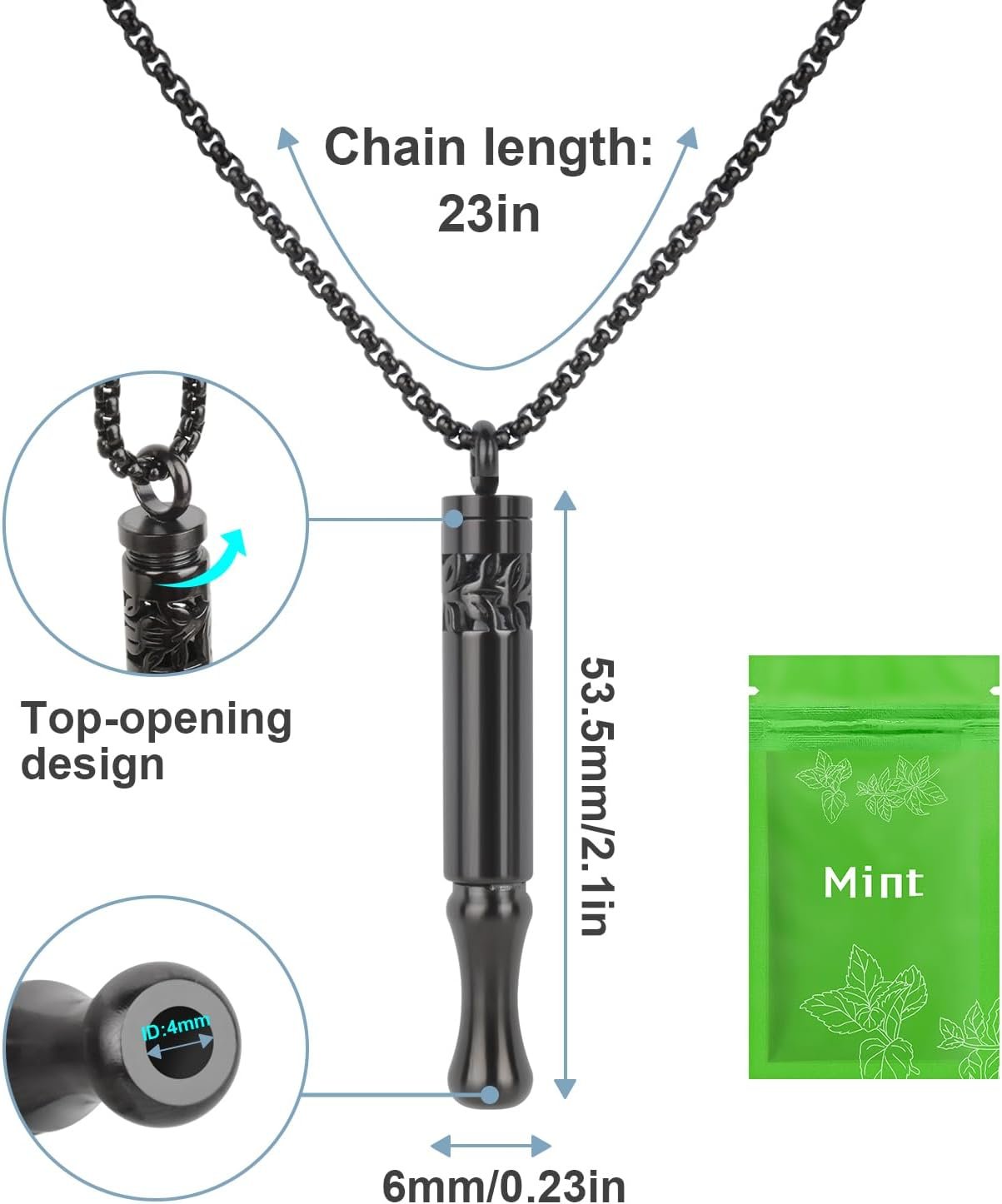 Strength Through Tranquillity: This anxiety-relieving necklace features a 23-inch chain and a 2.2-inch breathe easy pendant. Its simple design allows for easy cleaning for long-lasting hygiene and performance. Relieve stress anytime by slowing your breathing rhythm, gathering strength in tranquility