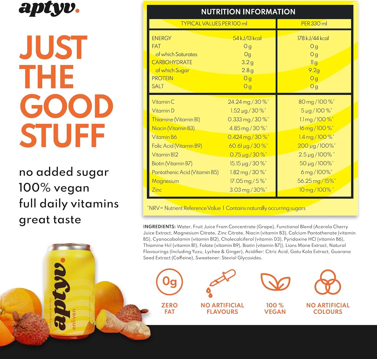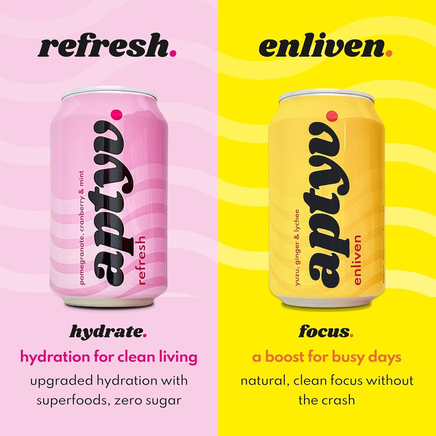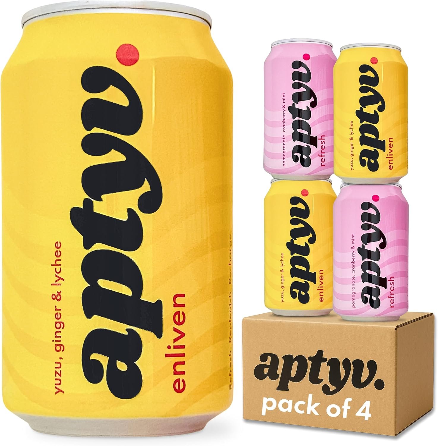 Aptyv Mixed Case Functional Soft Drinks – Enliven (Focus) + Refresh (Hydration) Variety Pack, No added Sugar Vegan Alternative to Energy & Sports Drinks with Vitamins & Electrolytes – 4 x 330ml