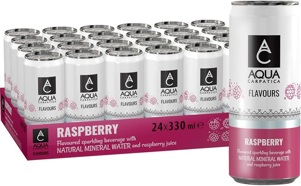 Be the first to review “AQUA Carpatica Sparkling Flavours Raspberry 330ml x 24 – Natural Fruit Juice Infused Sparkling Water, No Added Sugar, Naturally Alkaline, Sweetened with Agave Syrup, Rich in Minerals” Cancel reply