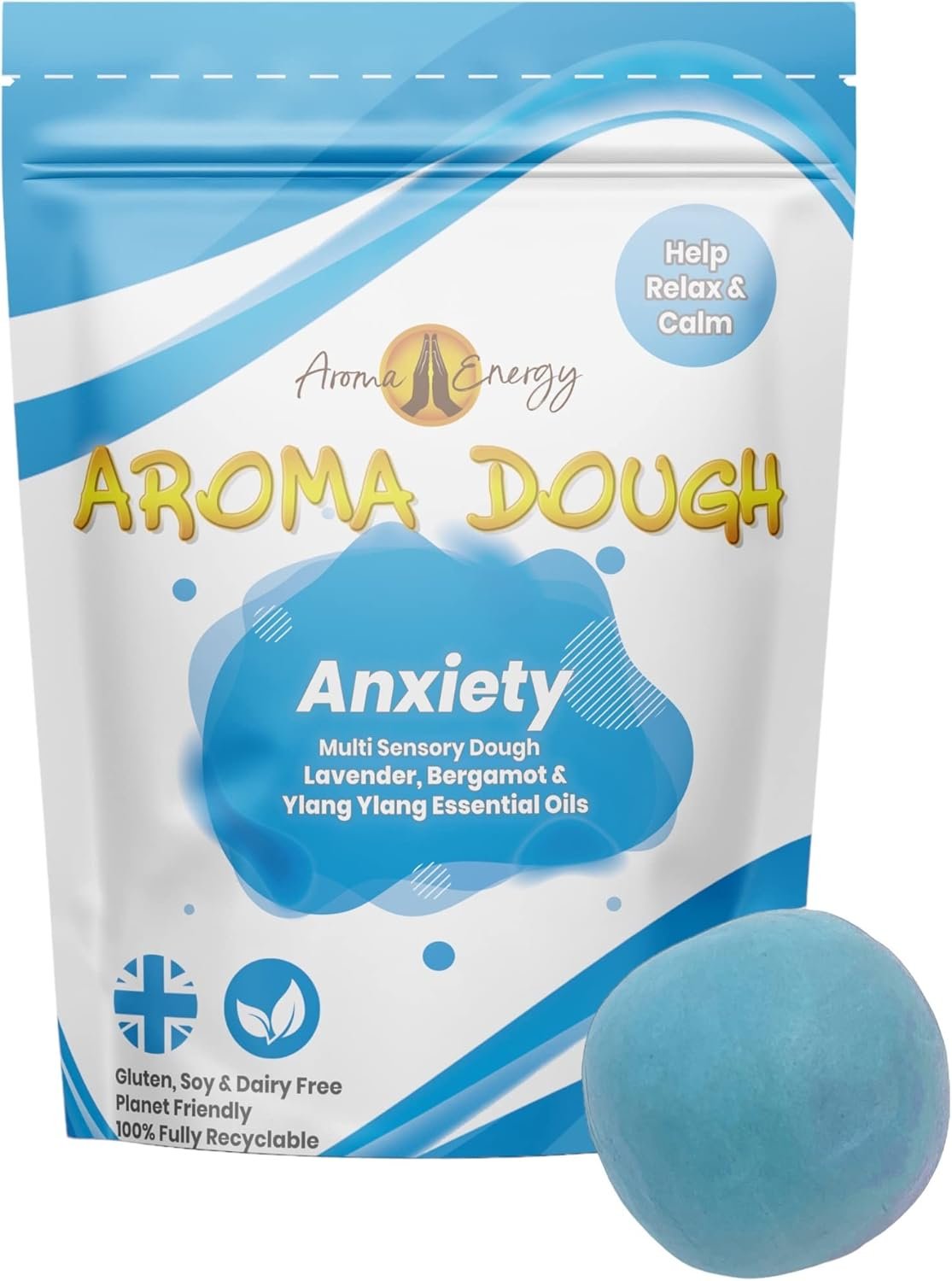 Anxiety Essential Oil: Our Anxiety AromaDough comes in a beautiful blue and is made with our famous Pure Lavender, Bergamot & Ylang Ylang Essential Oils, designed to help you relax & feel calm.