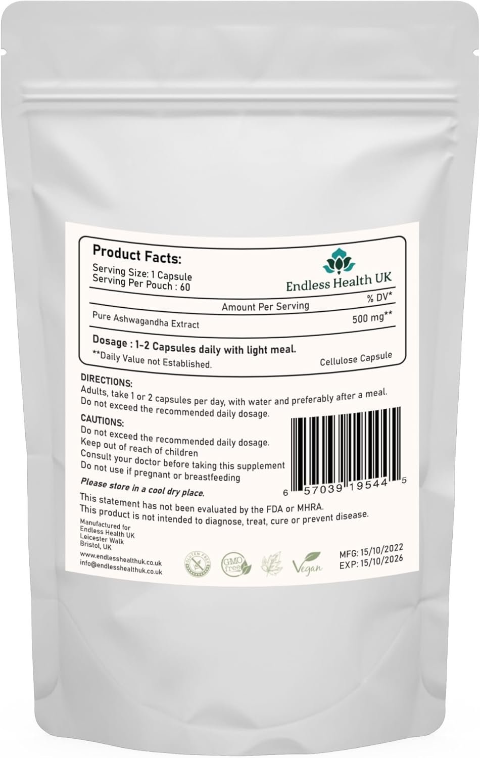 Ashwagandha Extract | High Strength | 20:1 Extract | 60 Capsules
