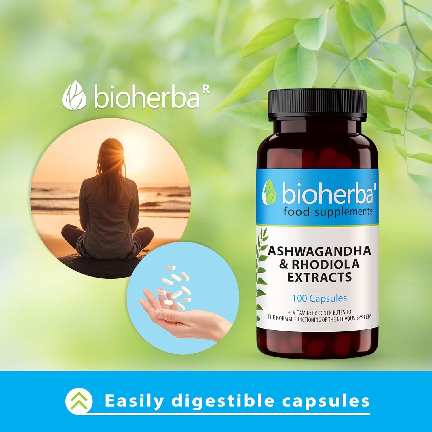 Ashwagandha Rhodiola Complex – 100 Capsules | Adaptogen Formula with B-Vitamins for Energy and Mental Performance by BIOHERBA