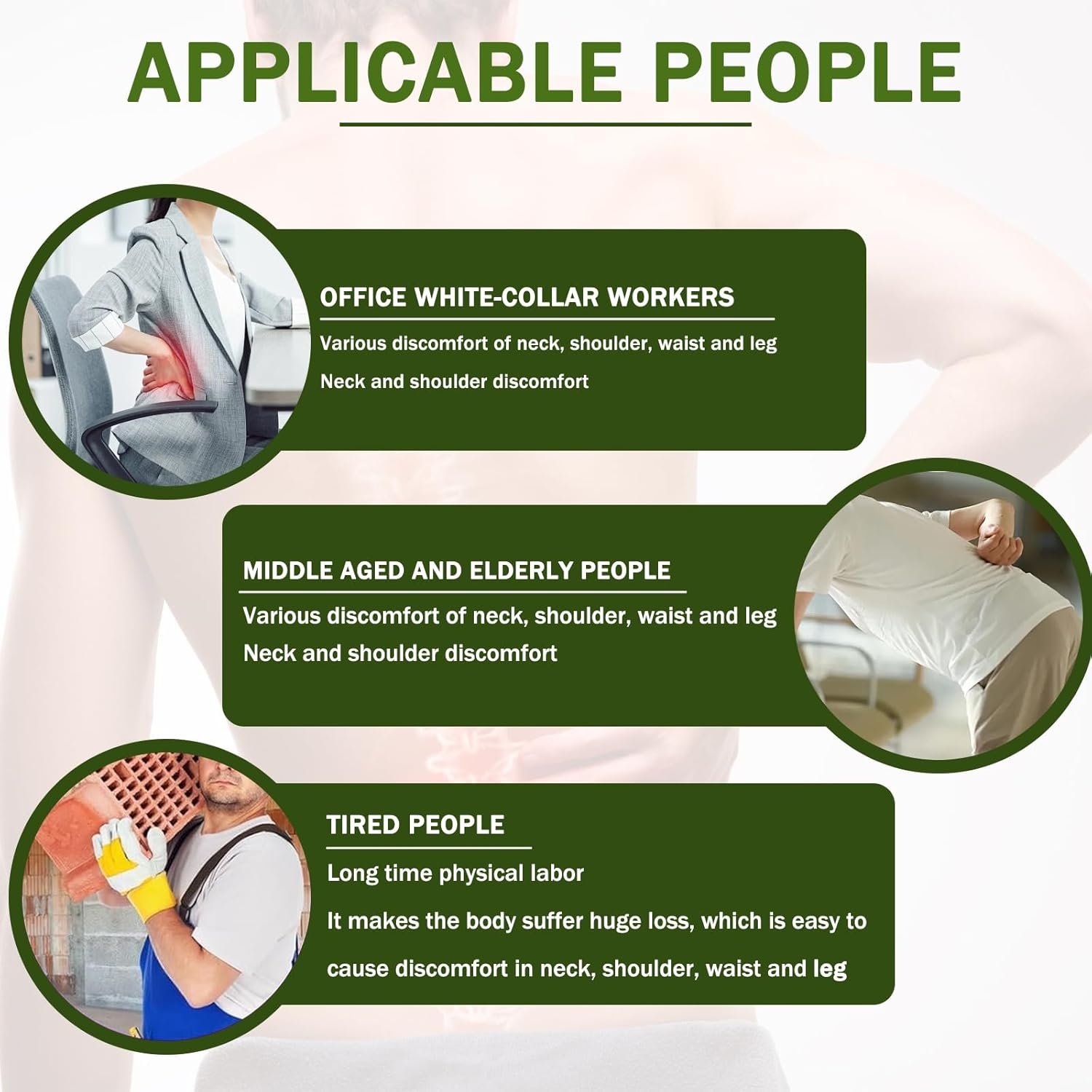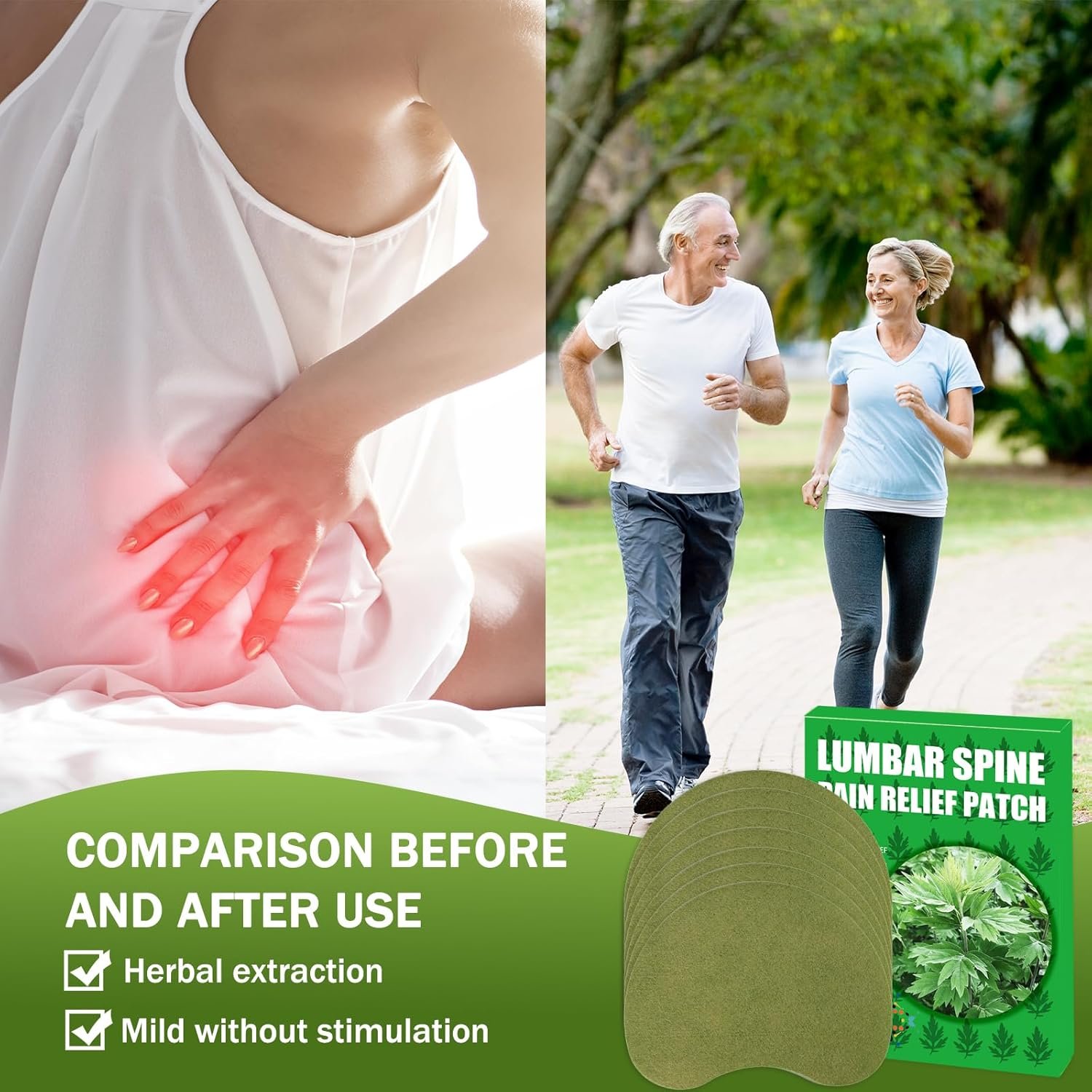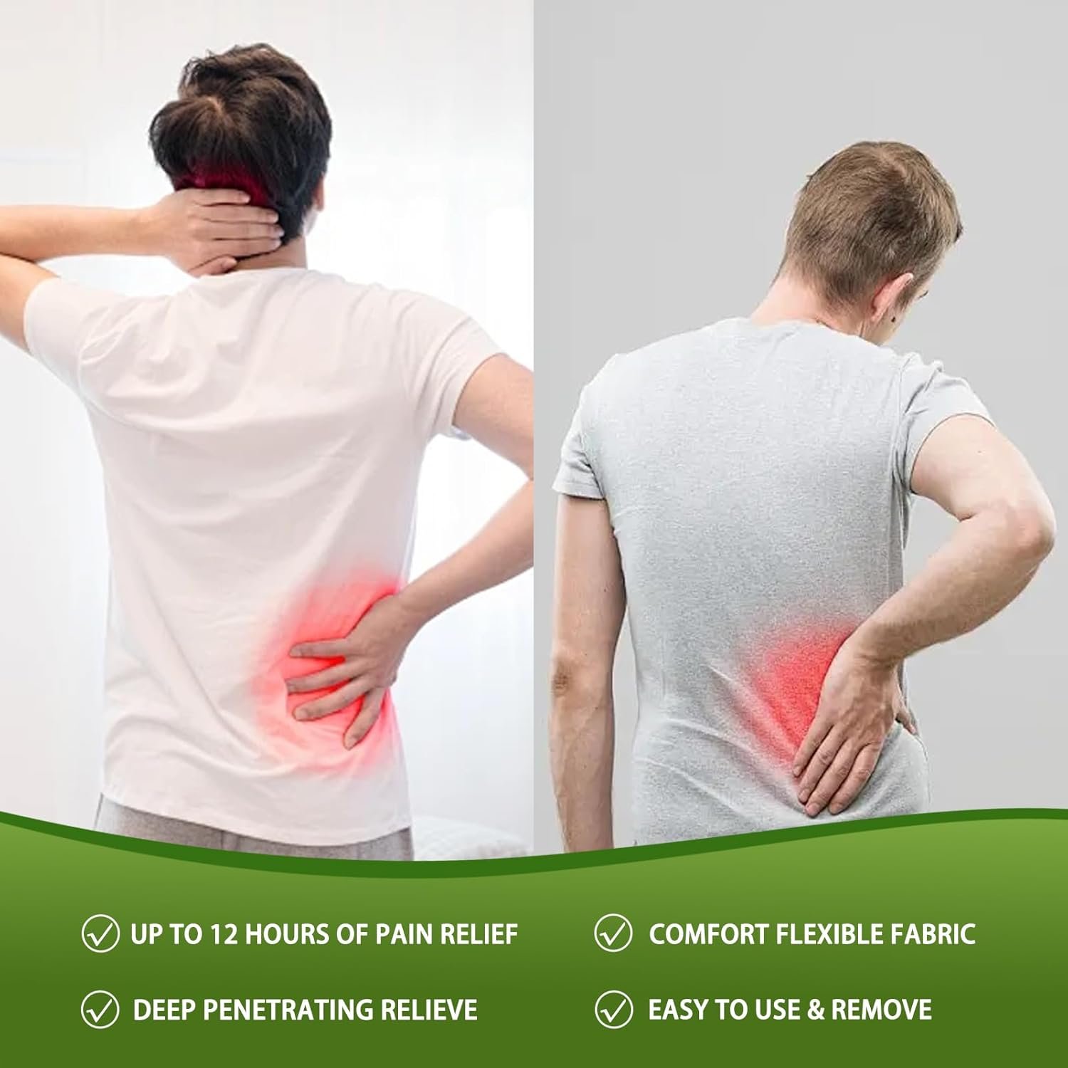 Relieves Back Pain:The Artemisia extract penetrates the skin, soothing back muscle pain and alleviating discomfort caused by long-term strain and stress, providing lasting relief.