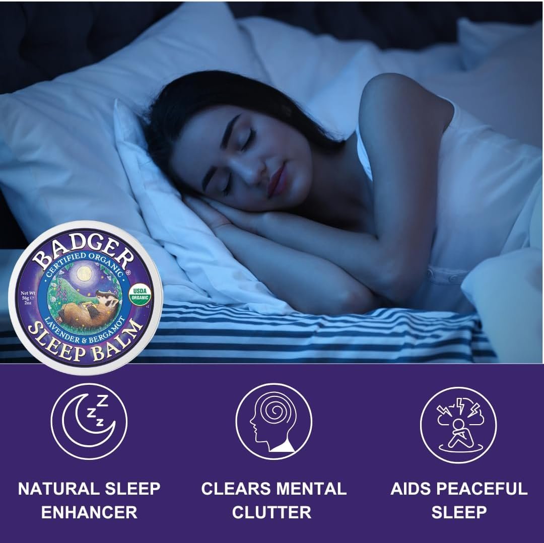 Badger Sleep Balm | Natural Aromatic Sleep Aid | Sleep Care With Lavender and Bergamot Essential Oils | Calms The Mind & Relieves Stress | Cruelty & Gluten-Free (56g)