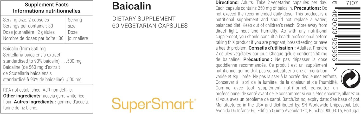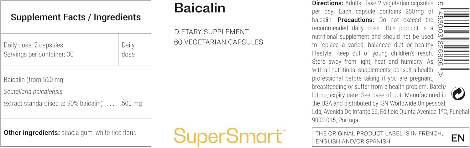 🌿 NATURAL INGREDIENTS: Extracted from the root of Scutellaria baicalensis, a medicinal plant used for centuries in traditional medicine. Vegan and gluten-free formula! At Supersmart, we select raw materials rich in active ingredients. We also prioritize eco-responsible practices and natural excipients.