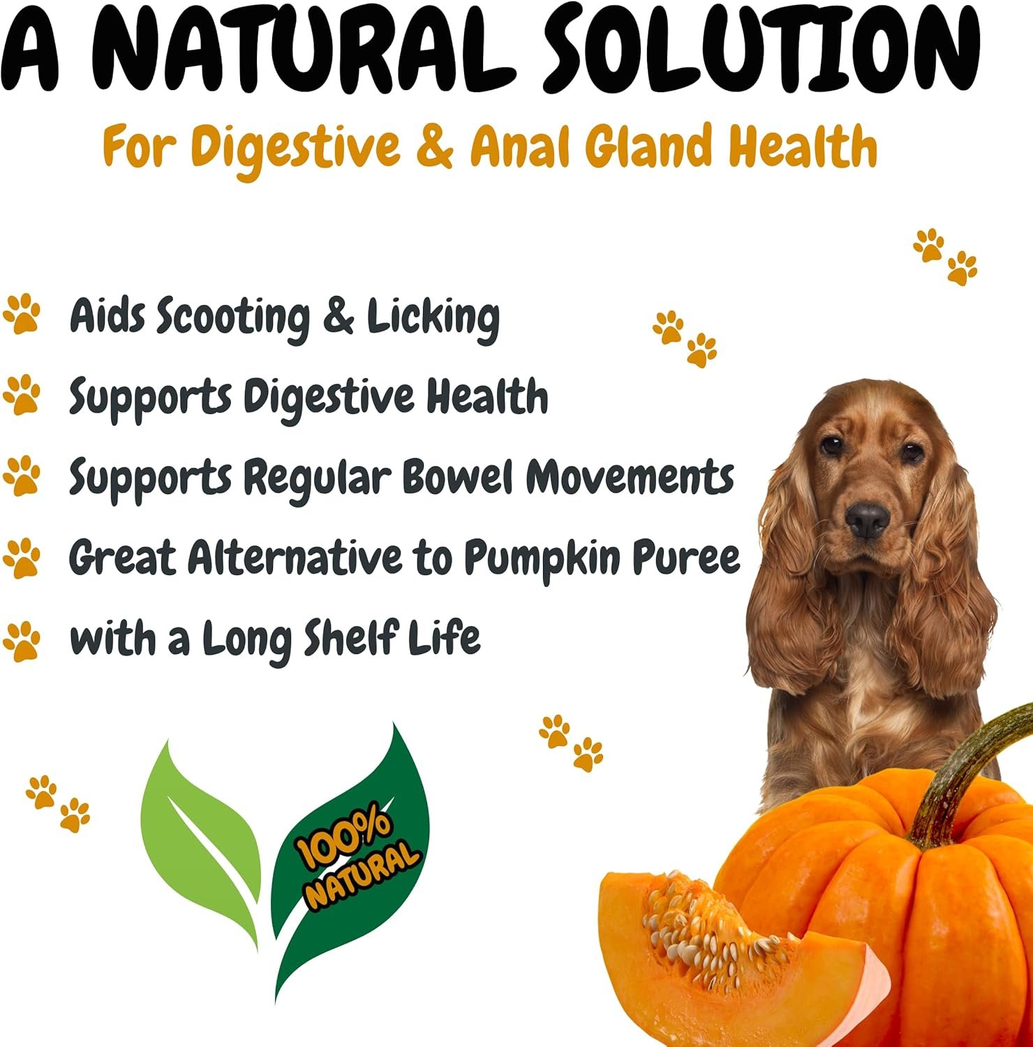 Why Pumpkin? Pumpkin is naturally rich in soluble and insoluble fiber, helping to regulate digestion, support gland function, and firm up or soften stools when needed. It’s a gentle, effective way to keep your dog’s digestive system running smoothly — without artificial additives or harsh ingredients.