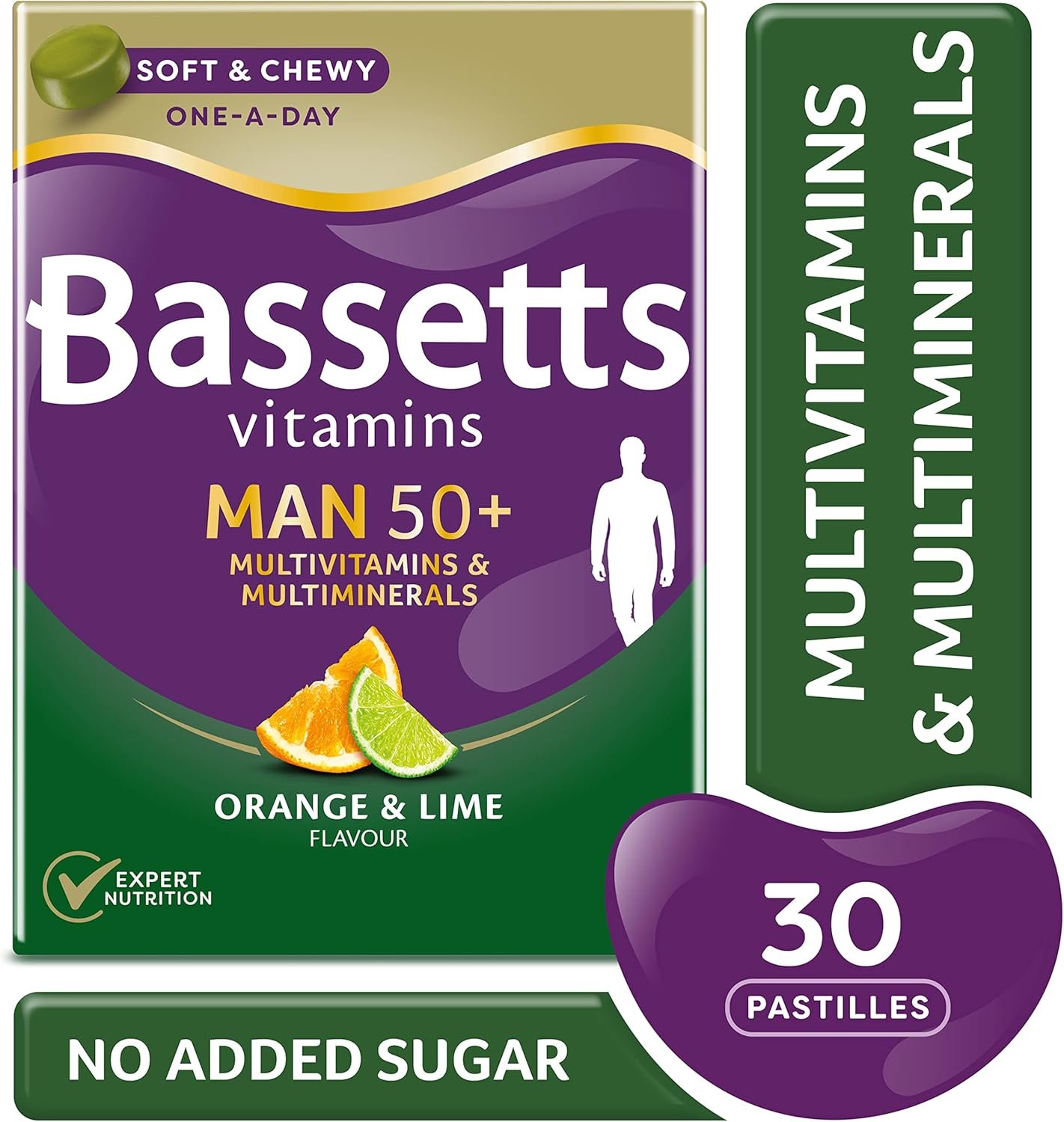 Bassetts Vitamins Man 50+ Multivitamins & Multiminerals Orange & Lime Flavour 30 Gummy Pastilles
