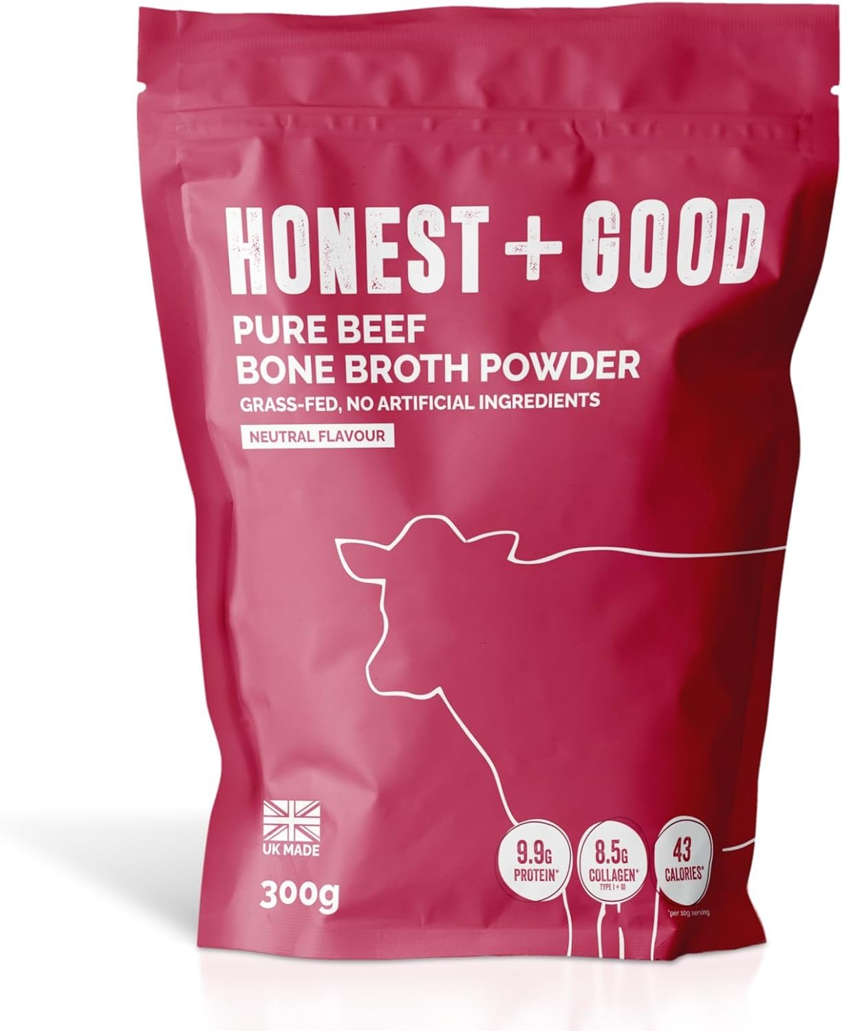 Beef Bone Broth Powder – 300 g | 1 Month Supply | Contains 8500mg Type I & III Collagen | Made with Grass Fed British Cattle | Promotes Hair Skin Nail & Gut Health | UK Made